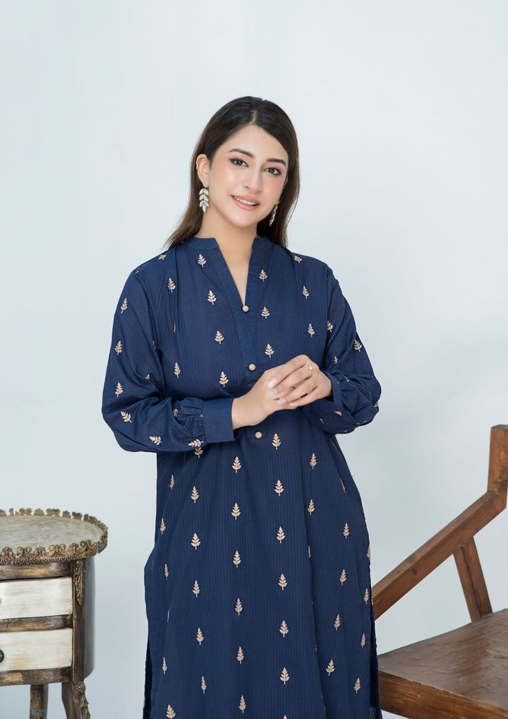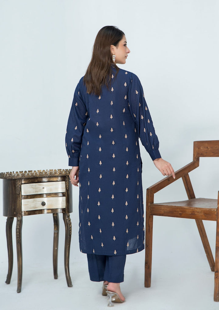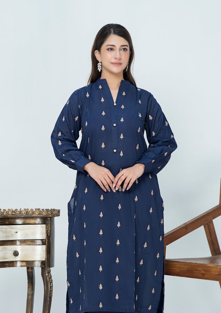 Elevate your everyday look with this elegant embroidered 2-piece suit crafted from premium lawn cotton fabric. The navy shirt is adorned with delicate thread embroidery, adding a graceful touch to its timeless design. Styled with a straight cut and minimal detailing, it ensures both comfort and sophistication. Paired with a matching trouser, this ensemble is perfect for casual wear, workwear, or semi-formal gatherings.