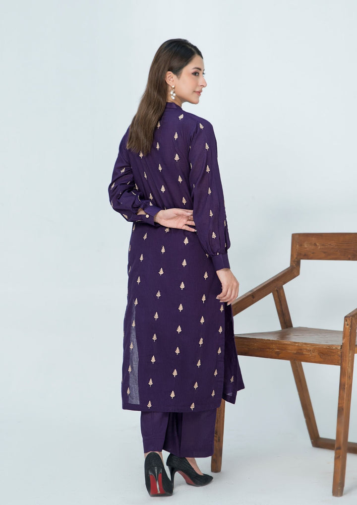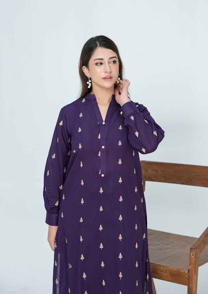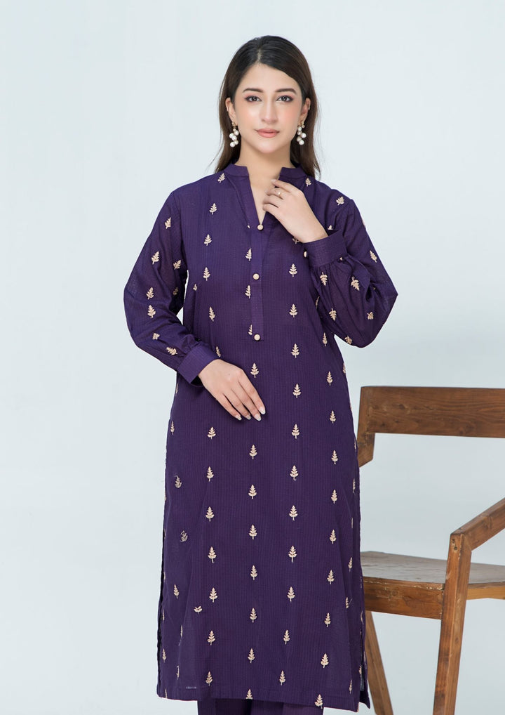 Elevate your everyday look with this elegant embroidered 2-piece suit crafted from premium lawn cotton fabric. The Plum shirt is adorned with delicate thread embroidery, adding a graceful touch to its timeless design. Styled with a straight cut and minimal detailing, it ensures both comfort and sophistication. Paired with a matching trouser, this ensemble is perfect for casual wear, workwear, or semi-formal gatherings.