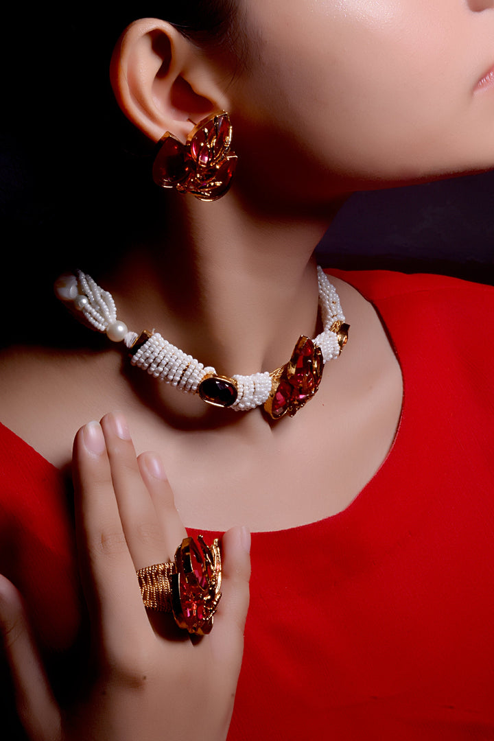 Anzay Jewellery - Party Wear Red Choker Necklace
