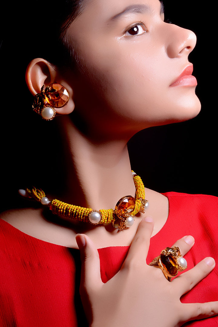 Anzay Jewellery - Party Wear Yellow Choker Necklace