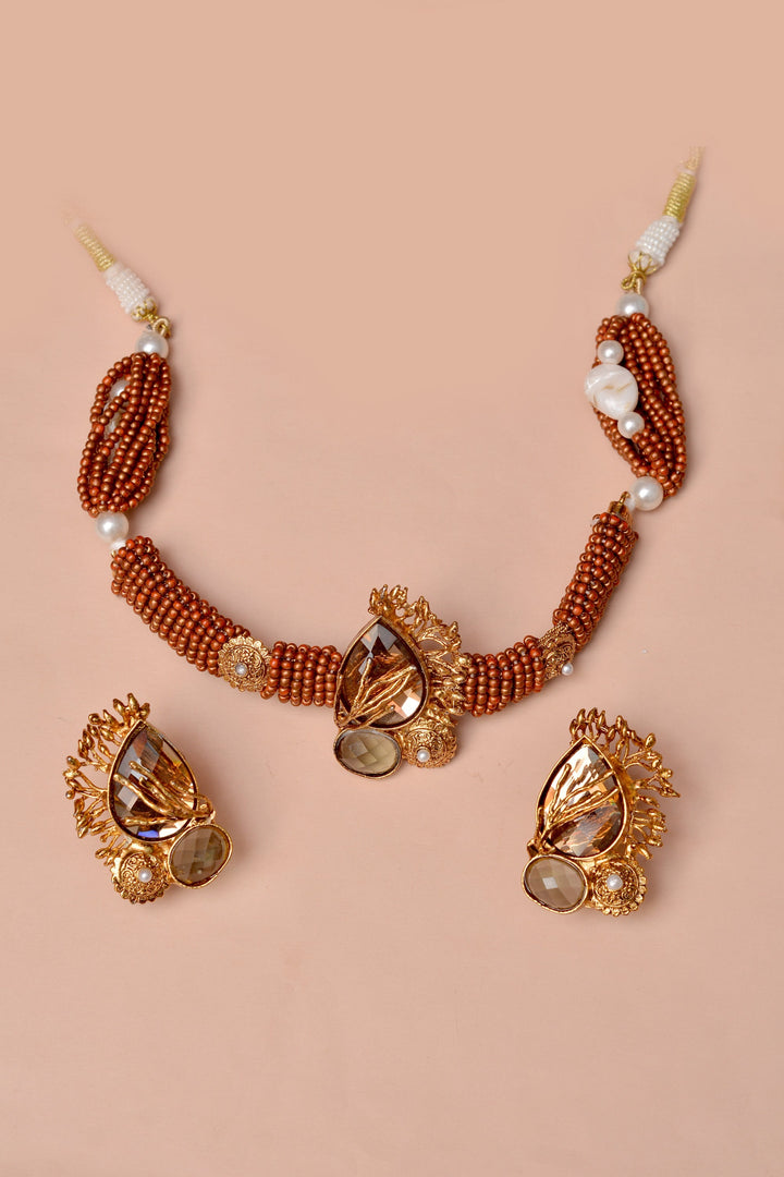 Anzay Jewellery - Party Wear Brown Choker Necklace