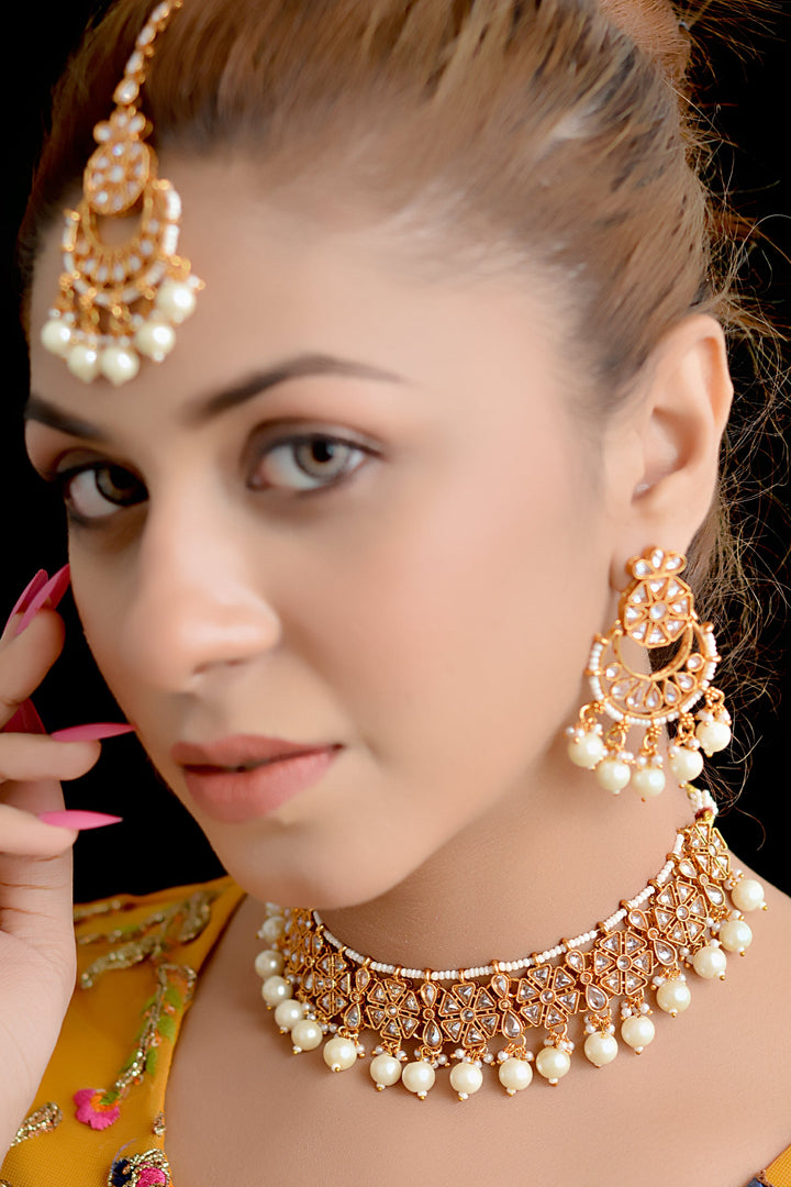 Anzay Jewellery - Party Wear Golden Party Set