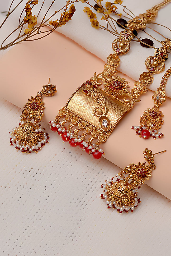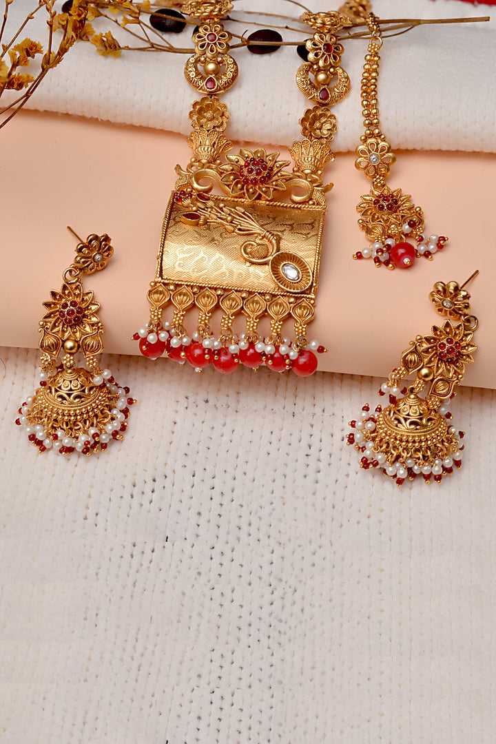 Anzay Jewellery - Party Wear Red Maala Necklace