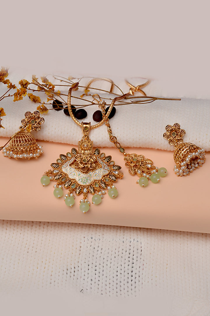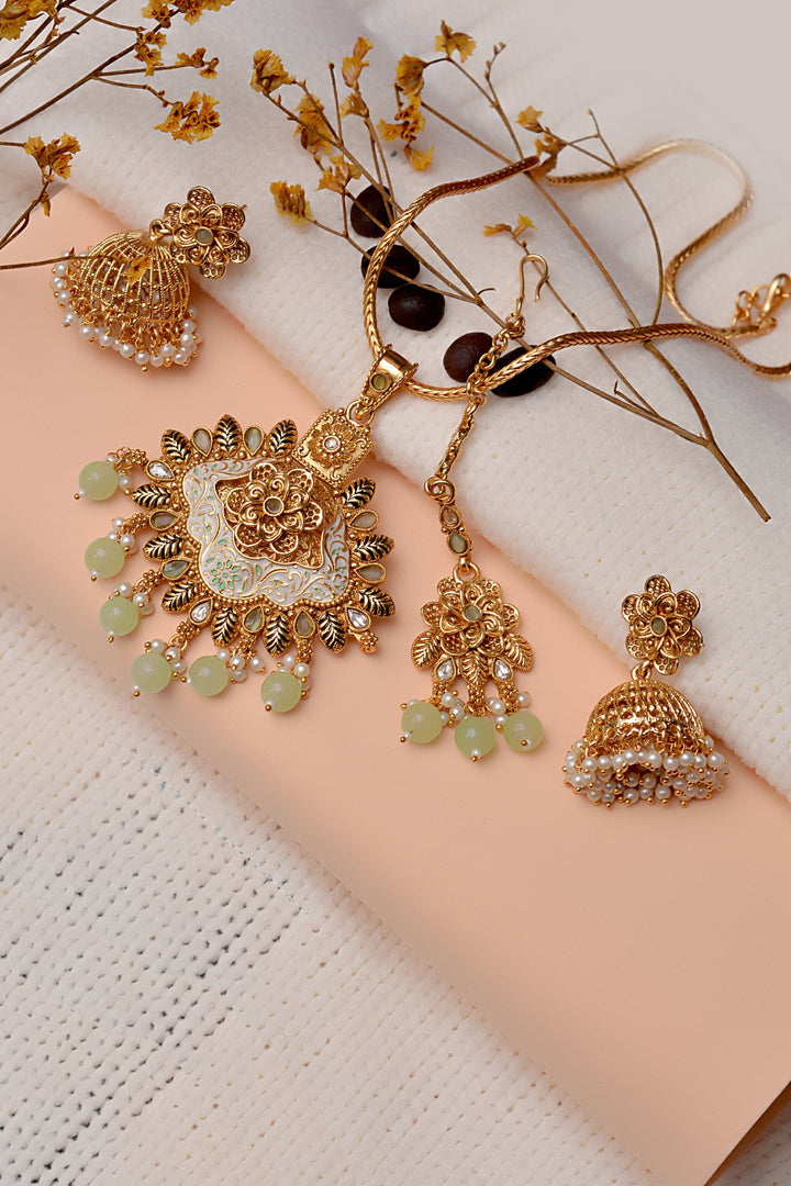 Anzay Jewellery - Party Wear Green Maala Necklace