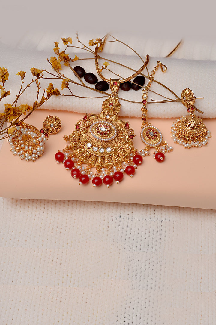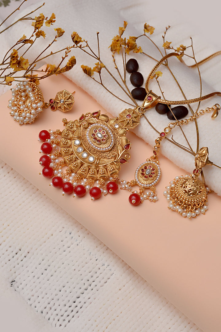 Anzay Jewellery - Party Wear Red Maala Necklace