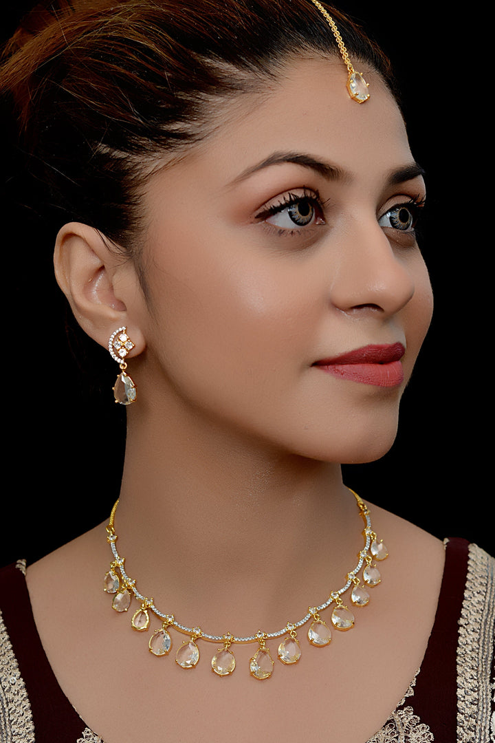 Anzay Jewellery - Party Wear Golden Party Set
