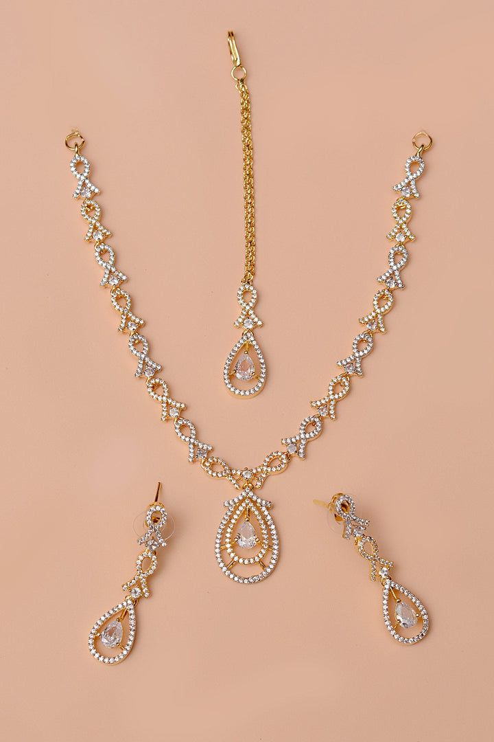 Anzay Jewellery - Party Wear Golden Party Set