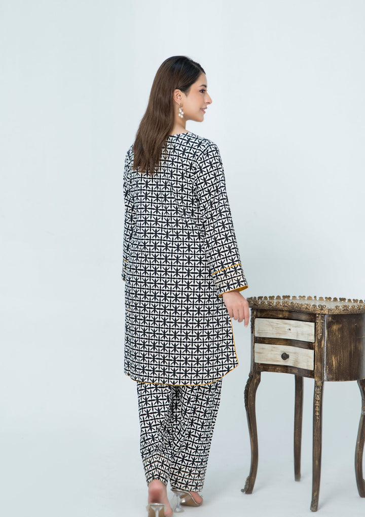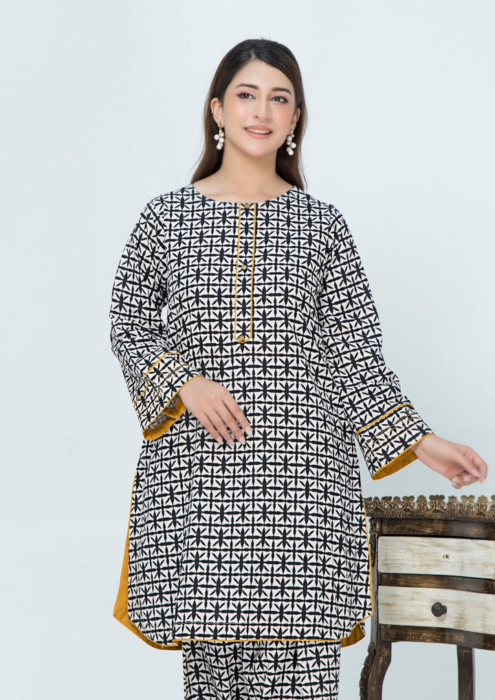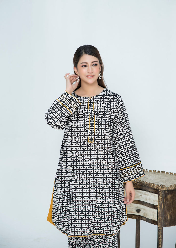 Add a touch of elegance to your wardrobe with this 2-Piece Khaddar Digital Print Suit. The bold monochrome geometric print is perfectly balanced with mustard detailing, giving it a chic and modern appeal. Crafted from premium khaddar fabric, this outfit ensures comfort and style throughout the winter season.