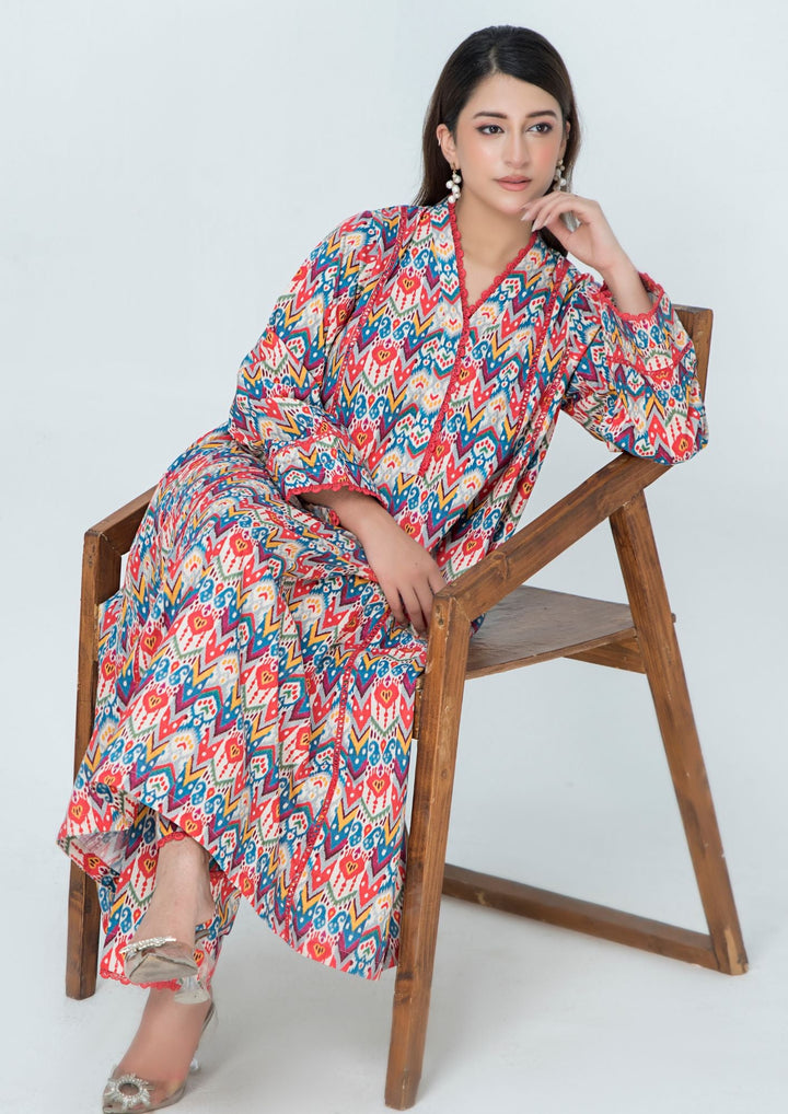 Brighten up your winter days with this 2-Piece Khaddar Digital Print Suit. Featuring a vibrant mix of colors in a bold geometric-tribal inspired pattern, this outfit is a true statement piece. Tailored from warm khaddar fabric, it ensures both comfort and style for the season.