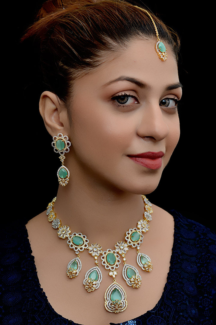 Anzay Jewellery - Engagement & Wedding Green Party Set