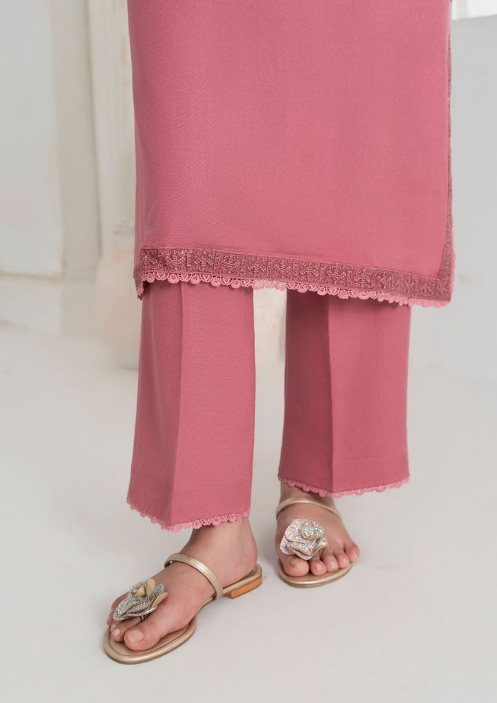 3 Pc Outfit - Alpine Wool Embroidered Shirt and Plain Trouser with Alpine Wool Embroidered Border Shawl