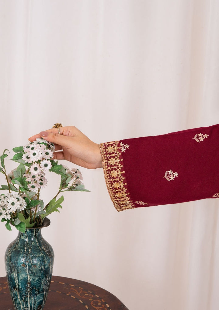 YoloPret - 3pc Embroidered Silk Karandi with Embroidered Border Shawl AML-W25-0030
