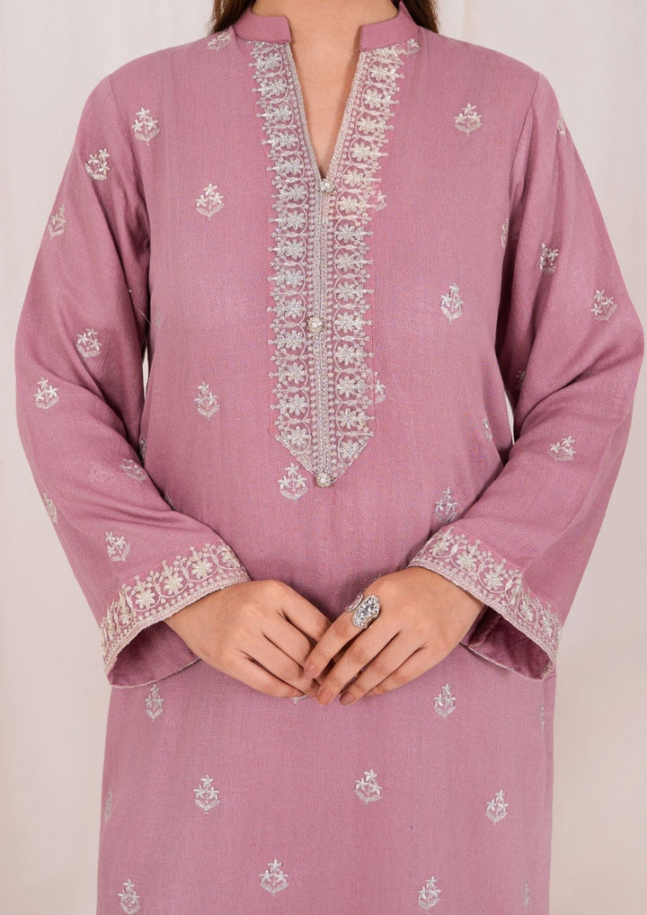 Radiate festive charm with this 3-piece Embroidered Silk Karandi ensemble, designed to bring elegance and comfort together. The 45-inch long shirt features intricate embroidery on the neckline, sleeves, and all-over motifs, creating a refined and regal appeal. A matching straight trouser complements the look, while the embroidered border shawl adds the perfect finishing touch for timeless sophistication.