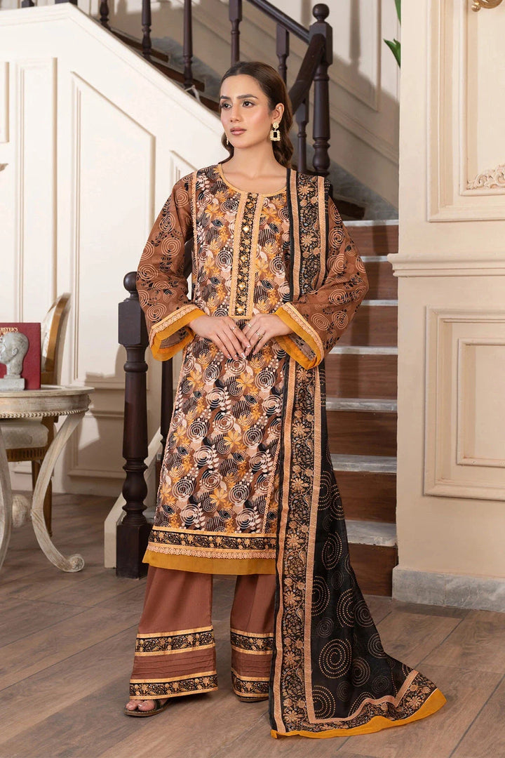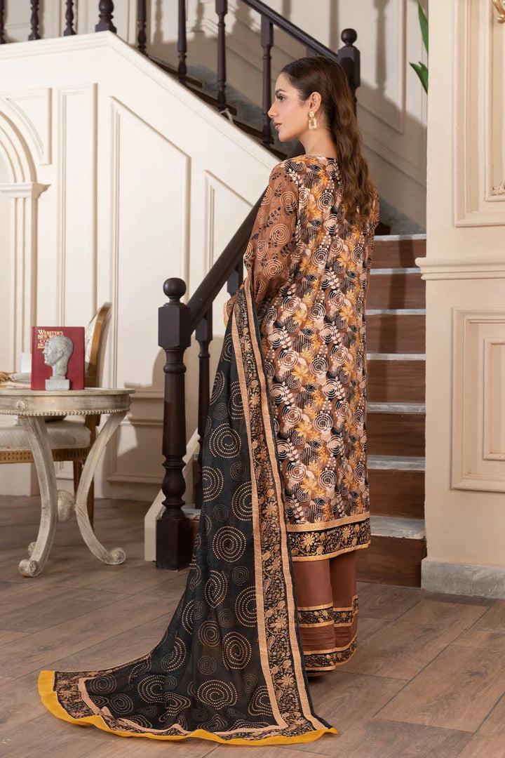 Explore Winter vibes 3pc Printed Cambric Suit this collection features printed Cambric shirt and dyed trouser with printed blended slub dupatta.