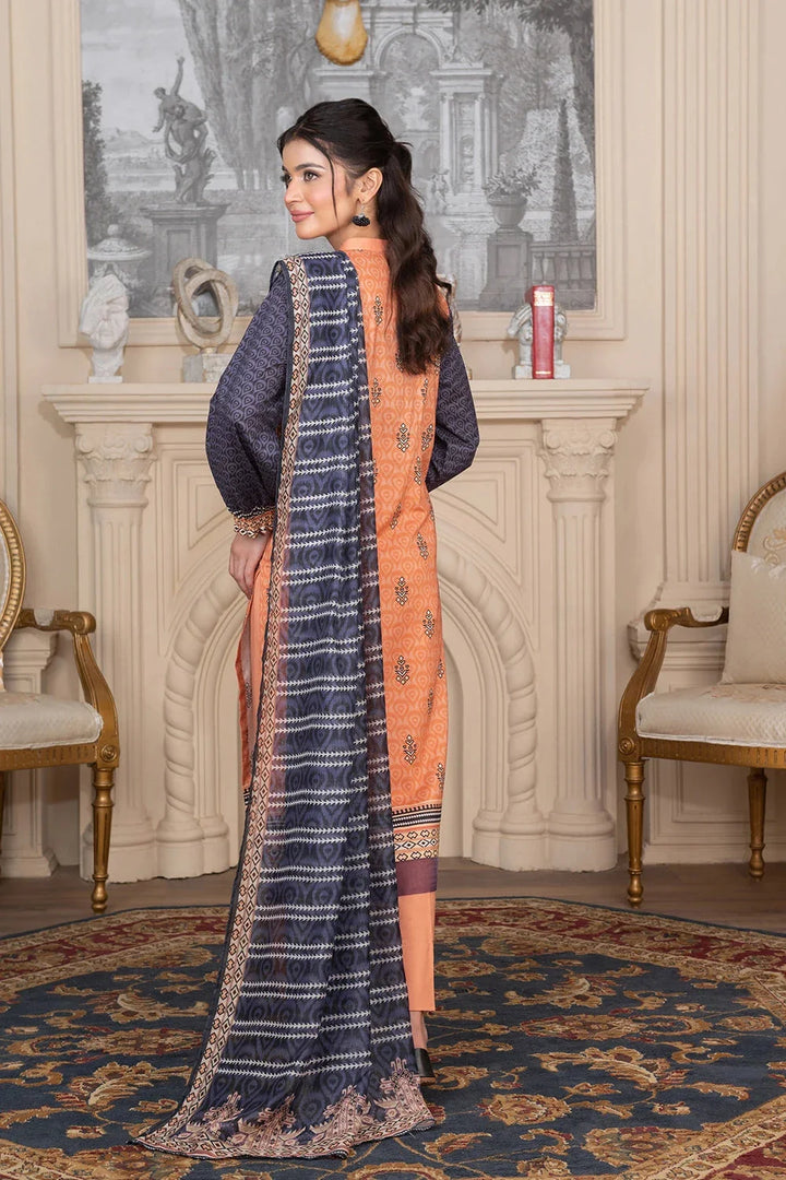 Explore Winter vibes 3pc Printed Cambric Suit this collection features printed Cambric shirt and dyed trouser with printed blended slub dupatta.