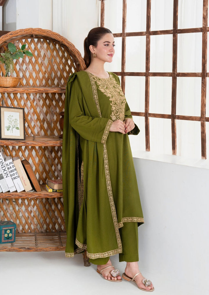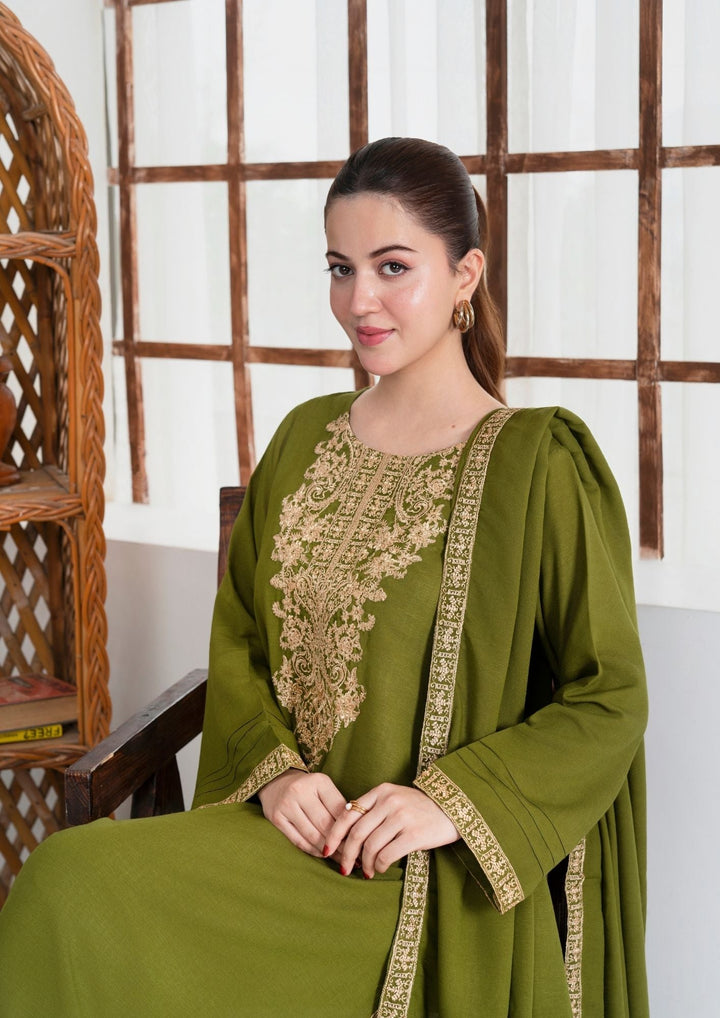 YoloPret - 3Pc Tilla Embroidered Silk Karandi with Tilla Embroidered Border Shawl AML-W25-0015