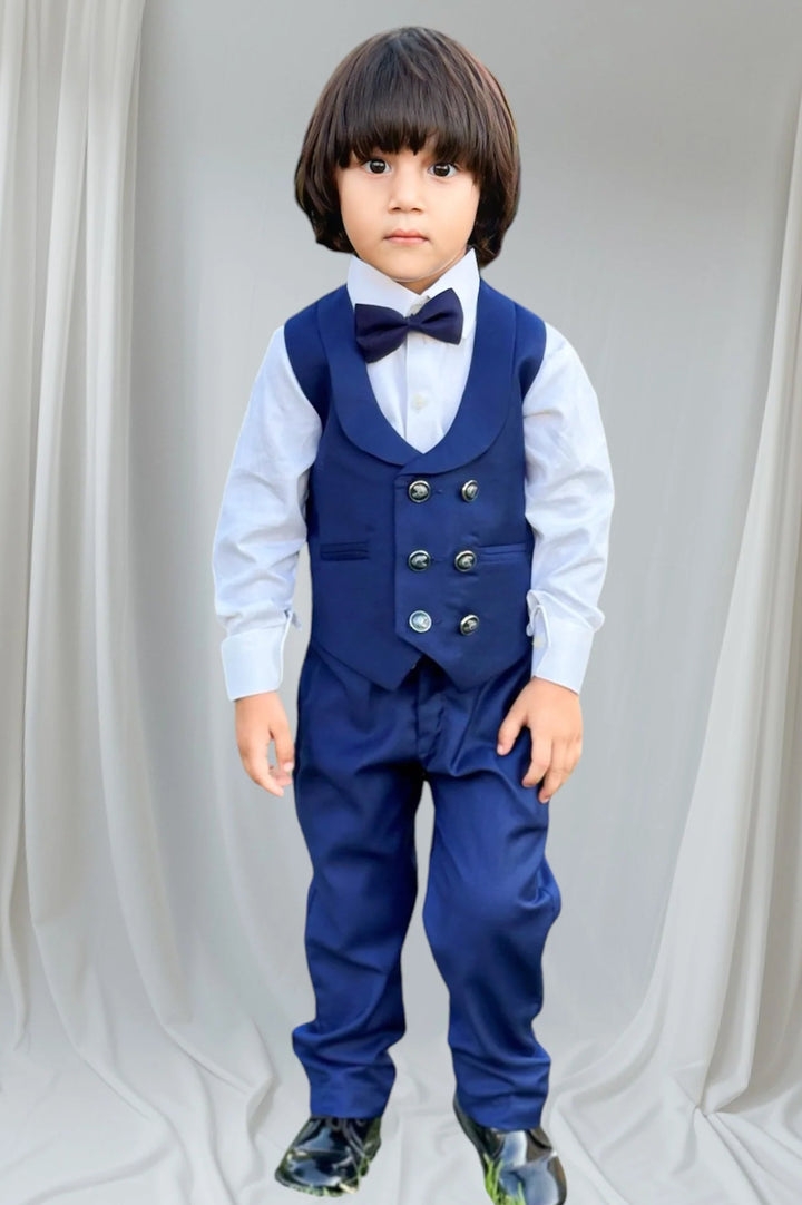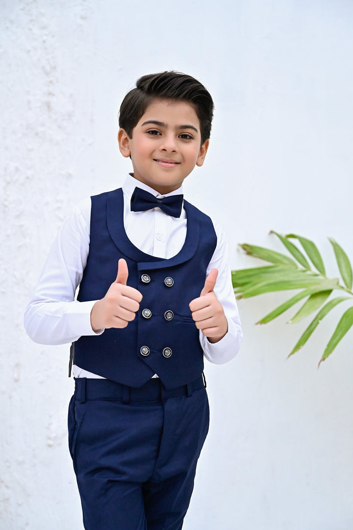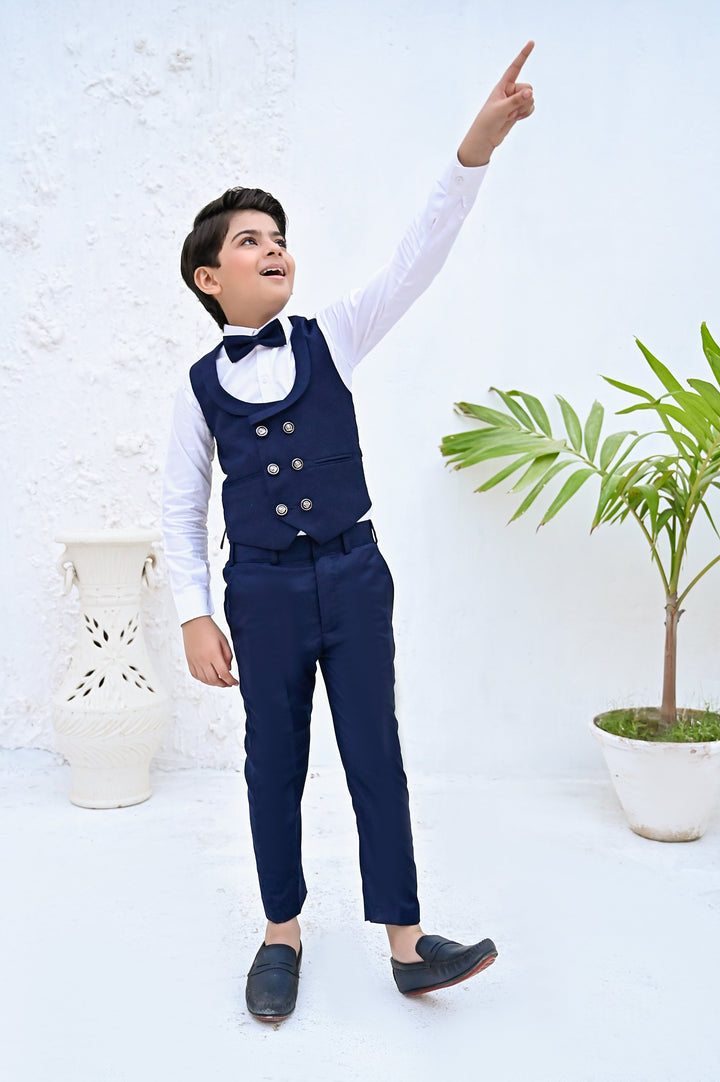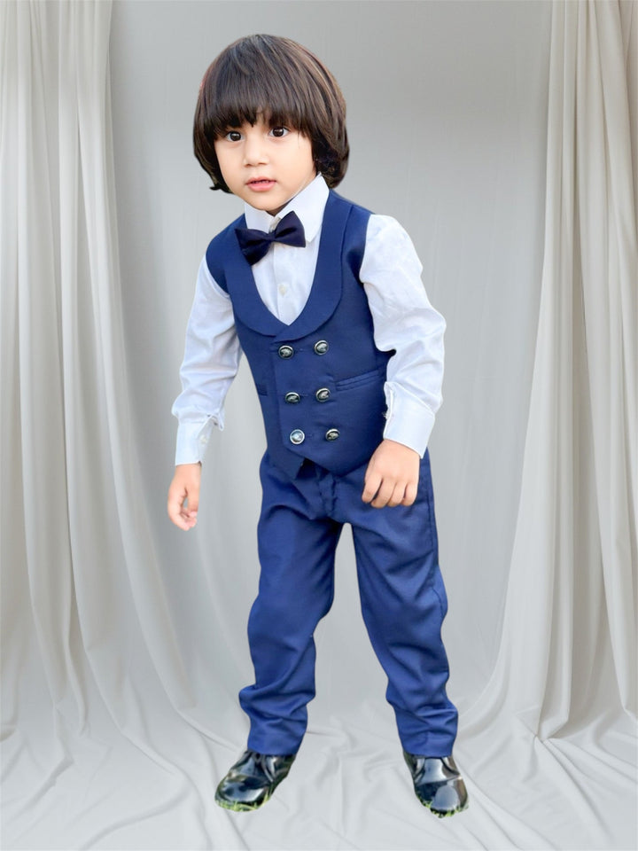 Hassanjee - 4pcs Blue suit (Waistcoat+Pant+Shirt+Bow) - CPW 006