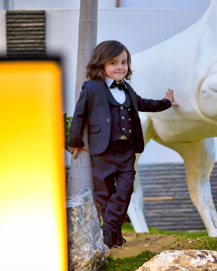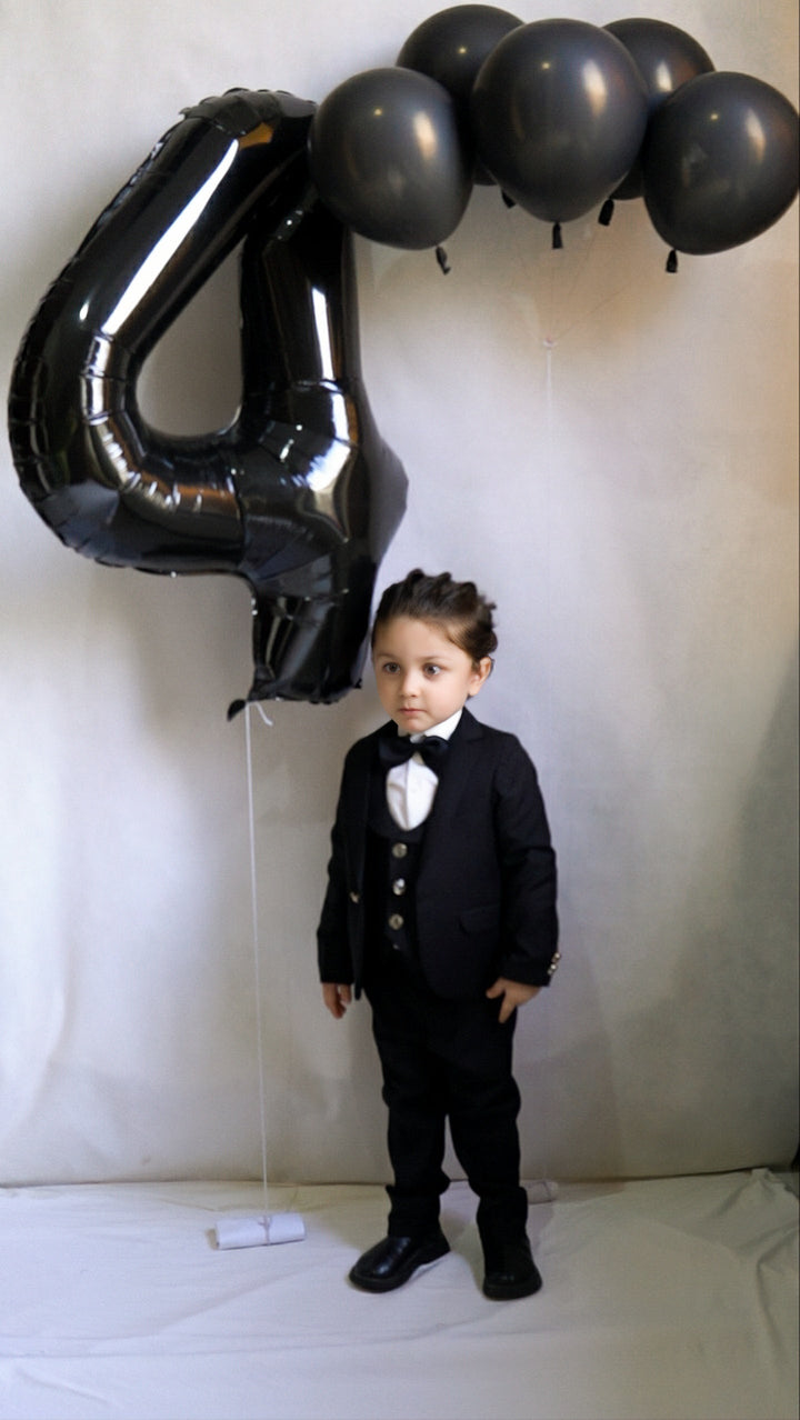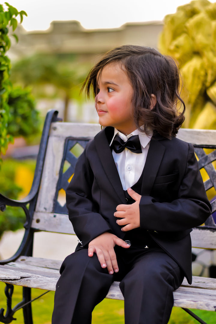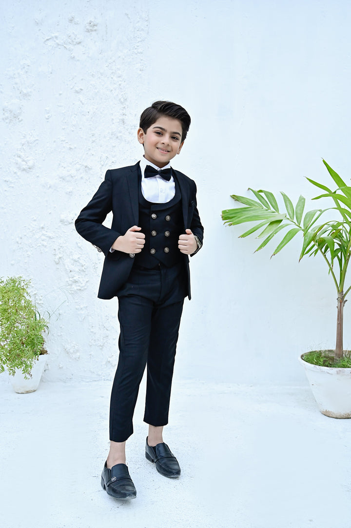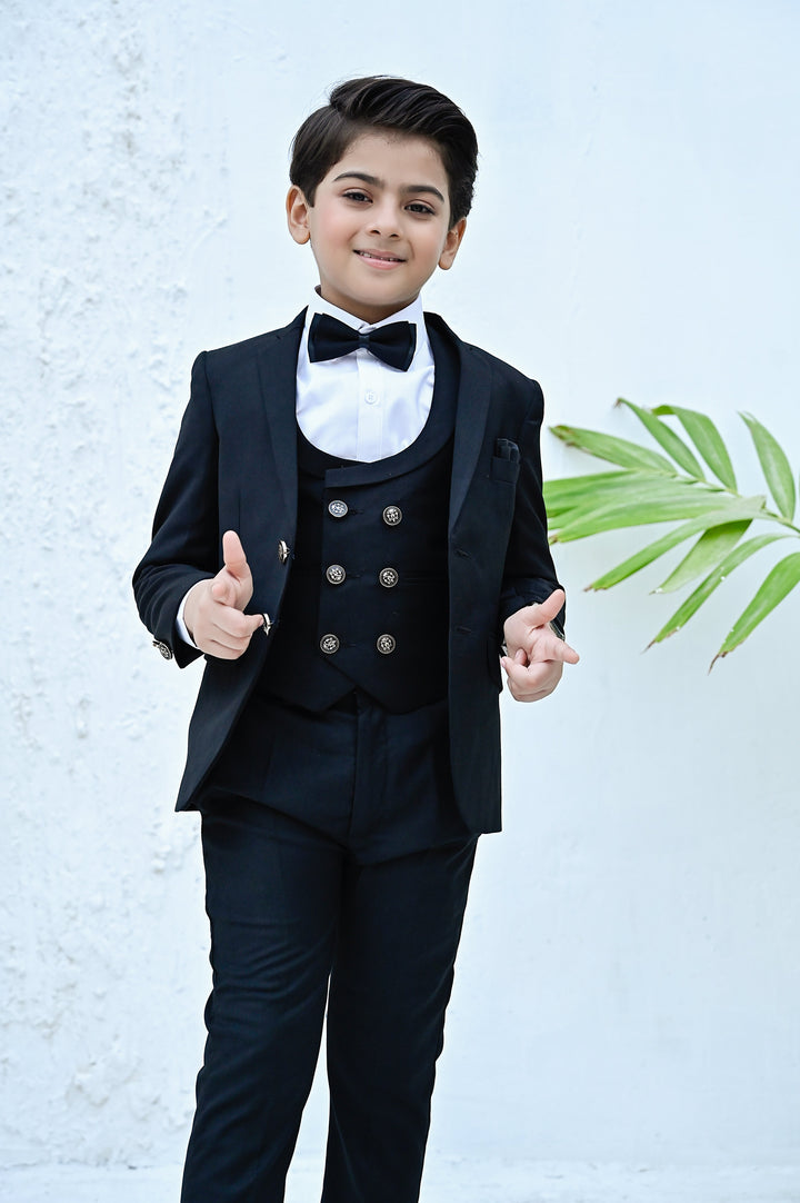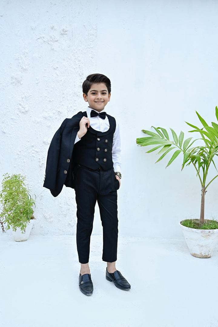 Hassanjee - 5pcs Black suit (Coat+Waistcoat+Pant+Shirt+Bow) - CPS 001