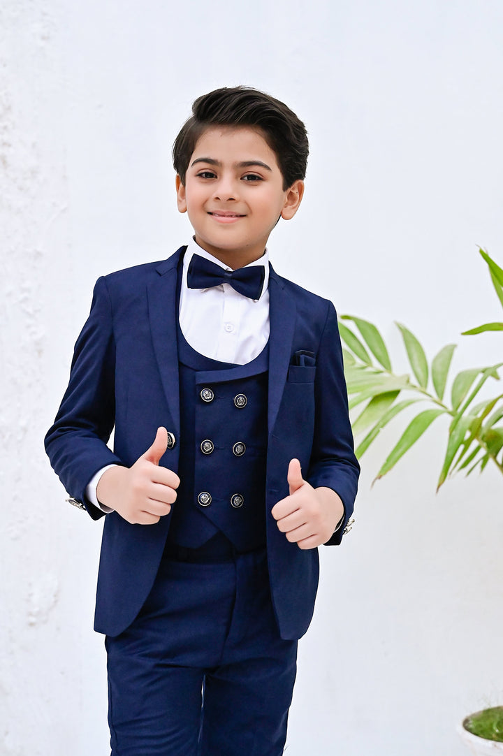 Hassanjee - 5pcs Blue suit (Coat+Waistcoat+Pant+Shirt+Bow) - CPS 002