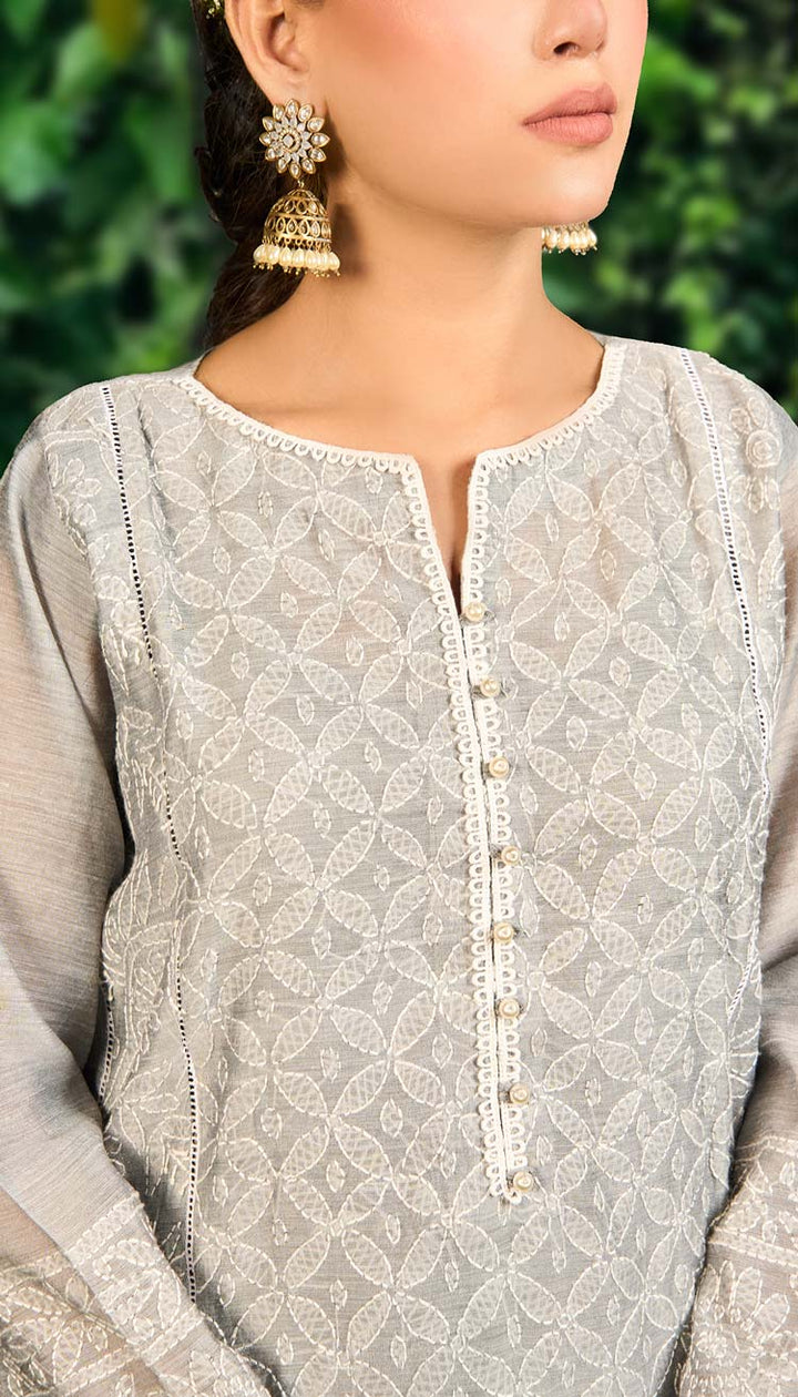 “Aangan” is a perfect addition to your wardrobe, it will make you stand out. Its breathable and lightweight fabric is perfect for summer. The hand-done chikankari will make you look graceful and elegant.