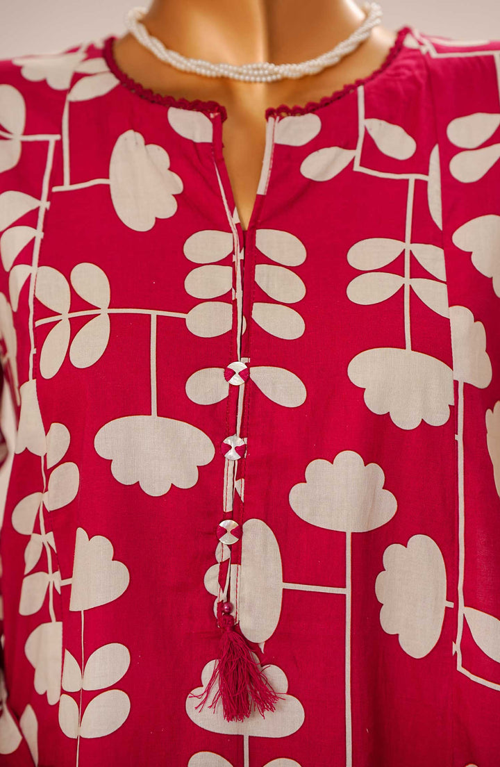 Digital Printed Summer Cotton Stitched Shirt with embellishments