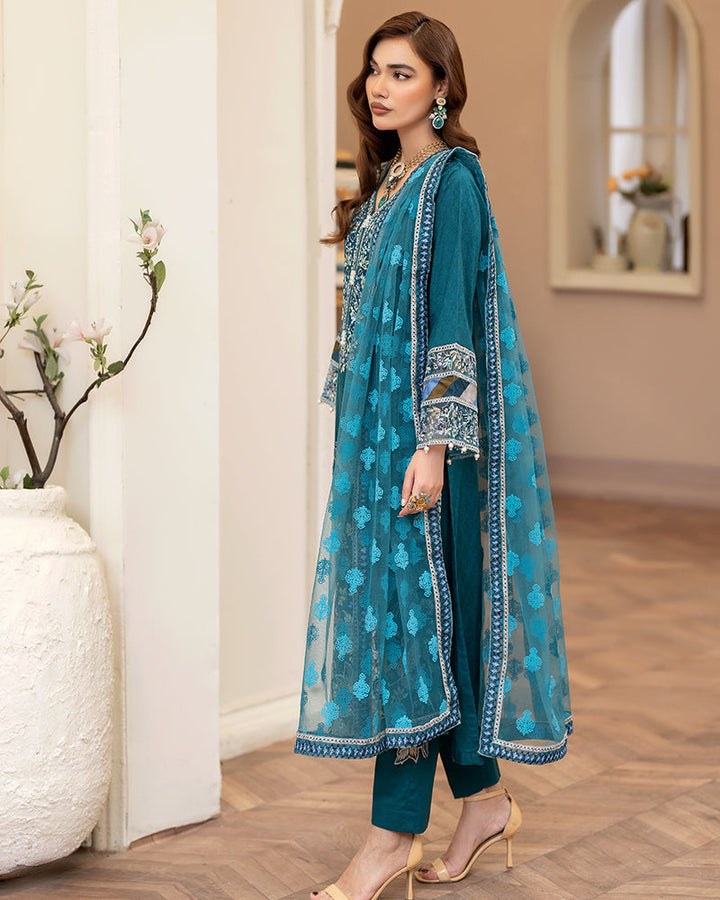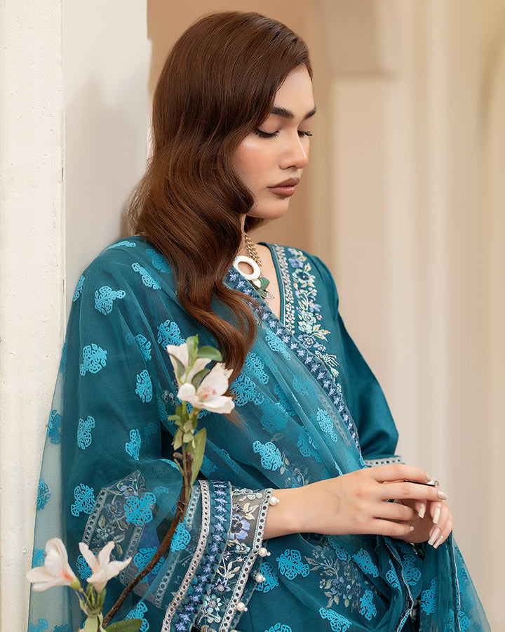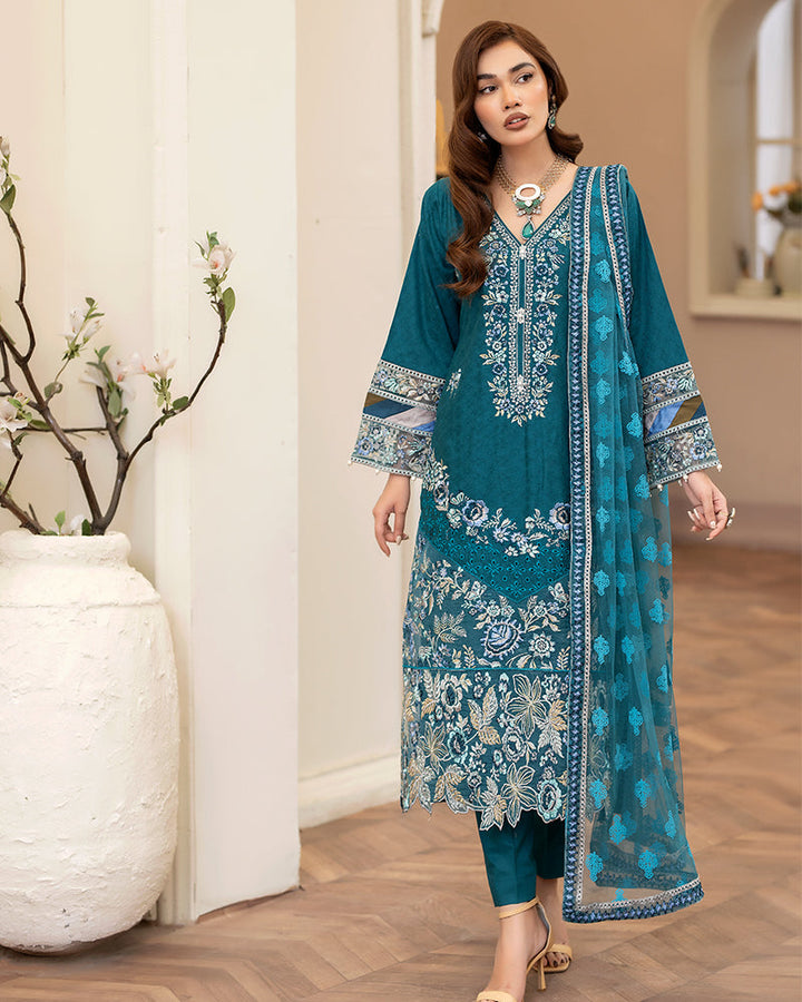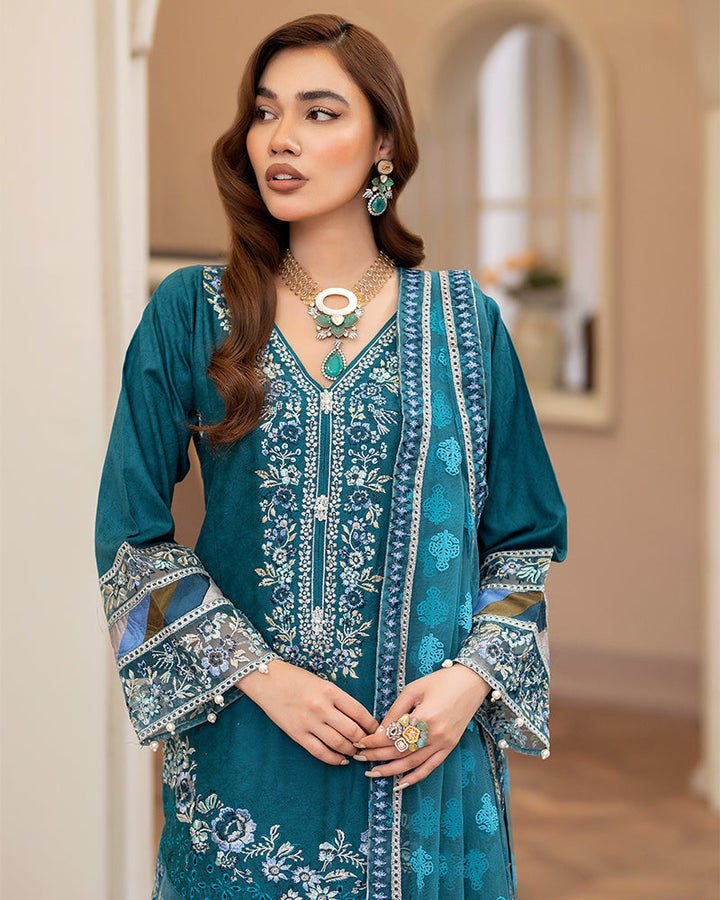 Cotton jacquard shirt is meticulously crafted with embroidery motifs, pearls, and applique design borders