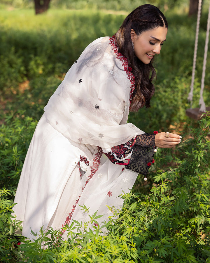3- Cotton palazzo pants showcase a beautifully embroidered border"