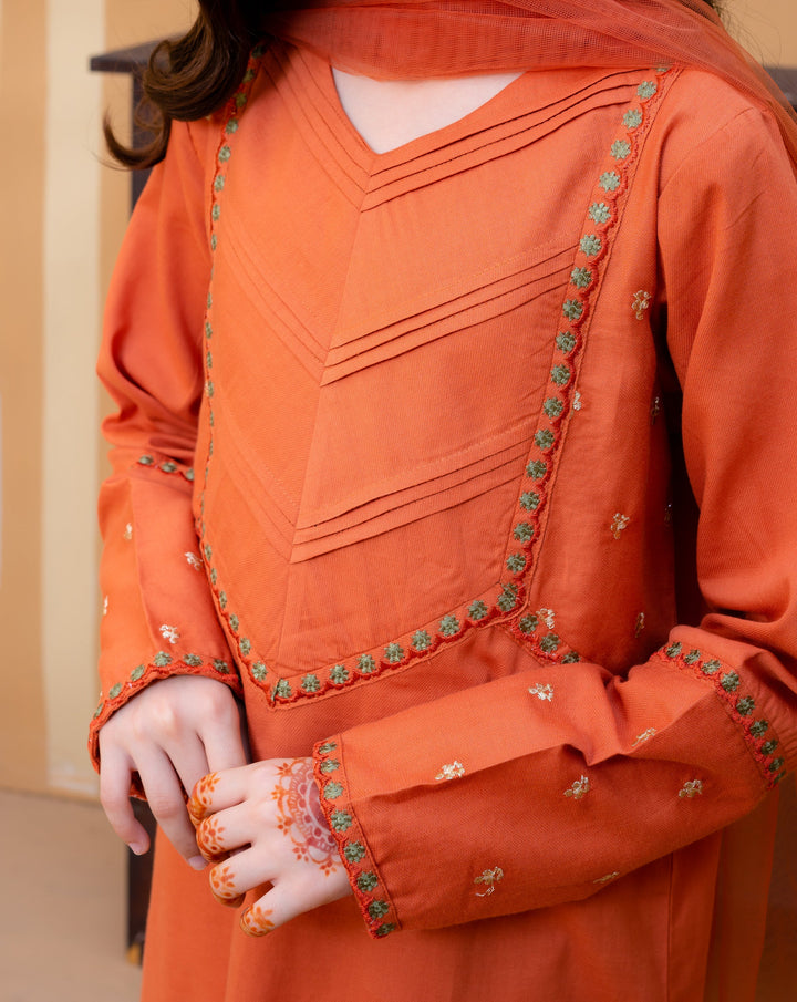 Al Qaswa - Girls Orange Embroidered Dupatta Shirt with Trousers