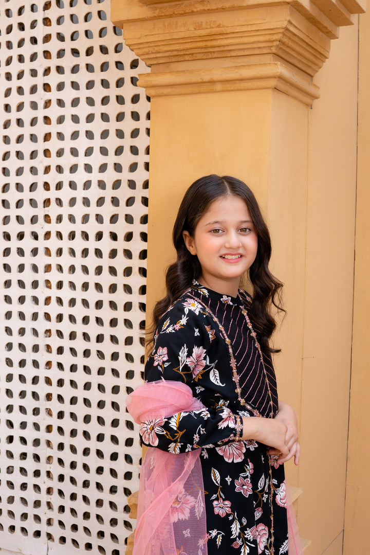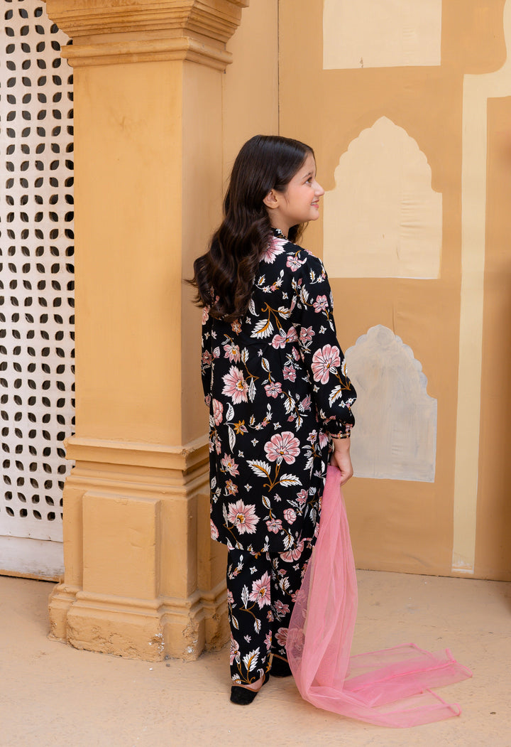 Al Qaswa - Girls Printed Embroidered Dupatta Shirt with Trouser