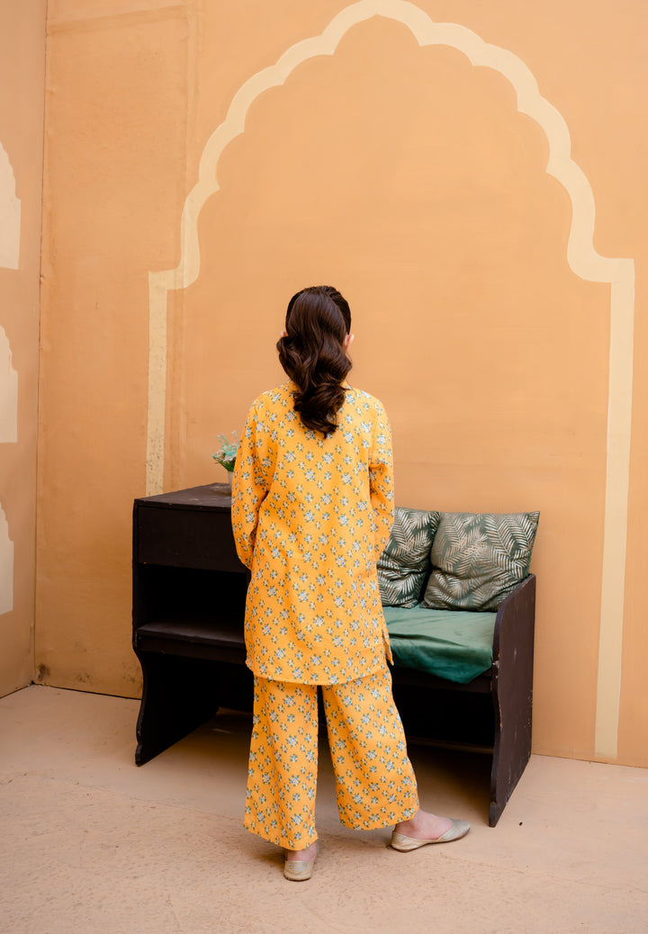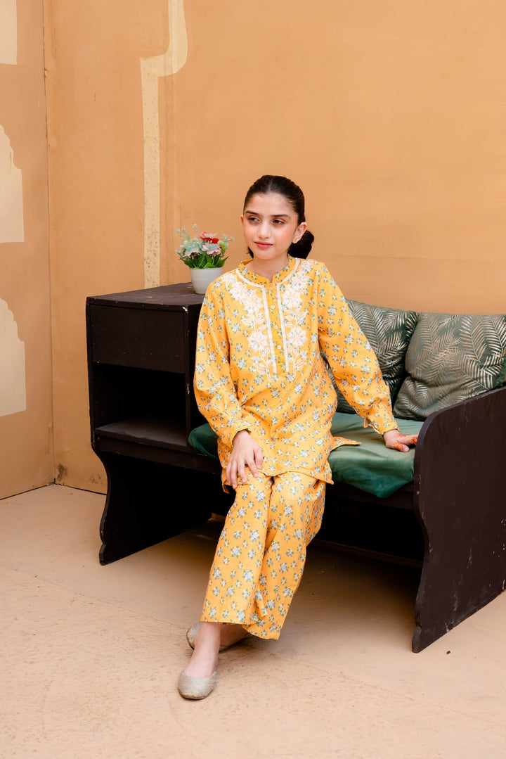 Al Qaswa - Girls Yellow Printed Embroidered Shirt with Trousers