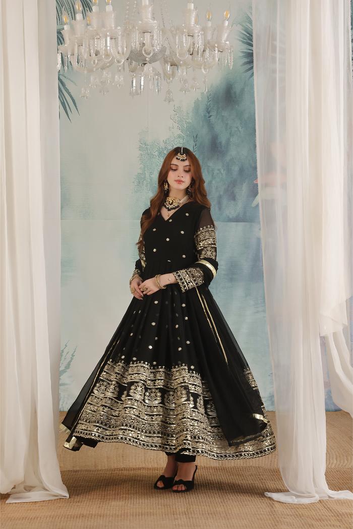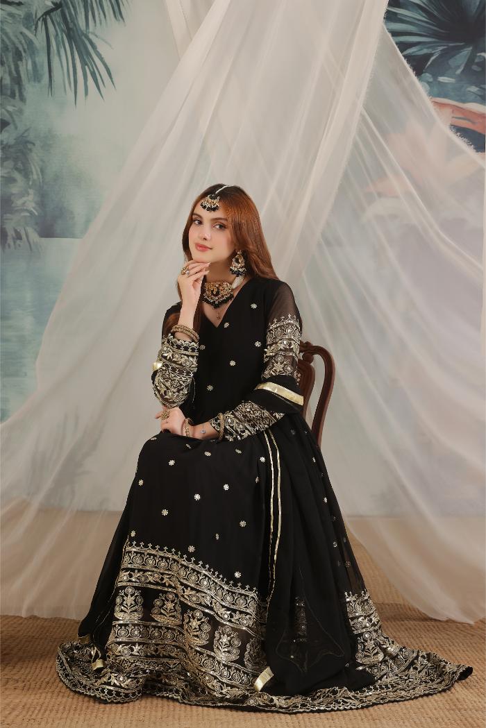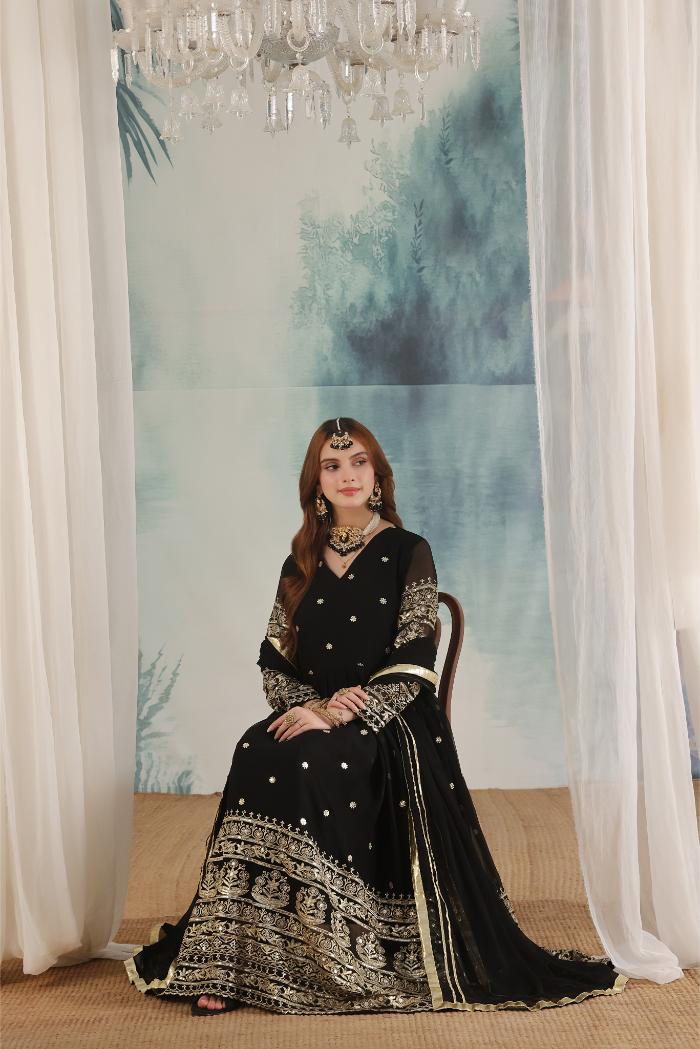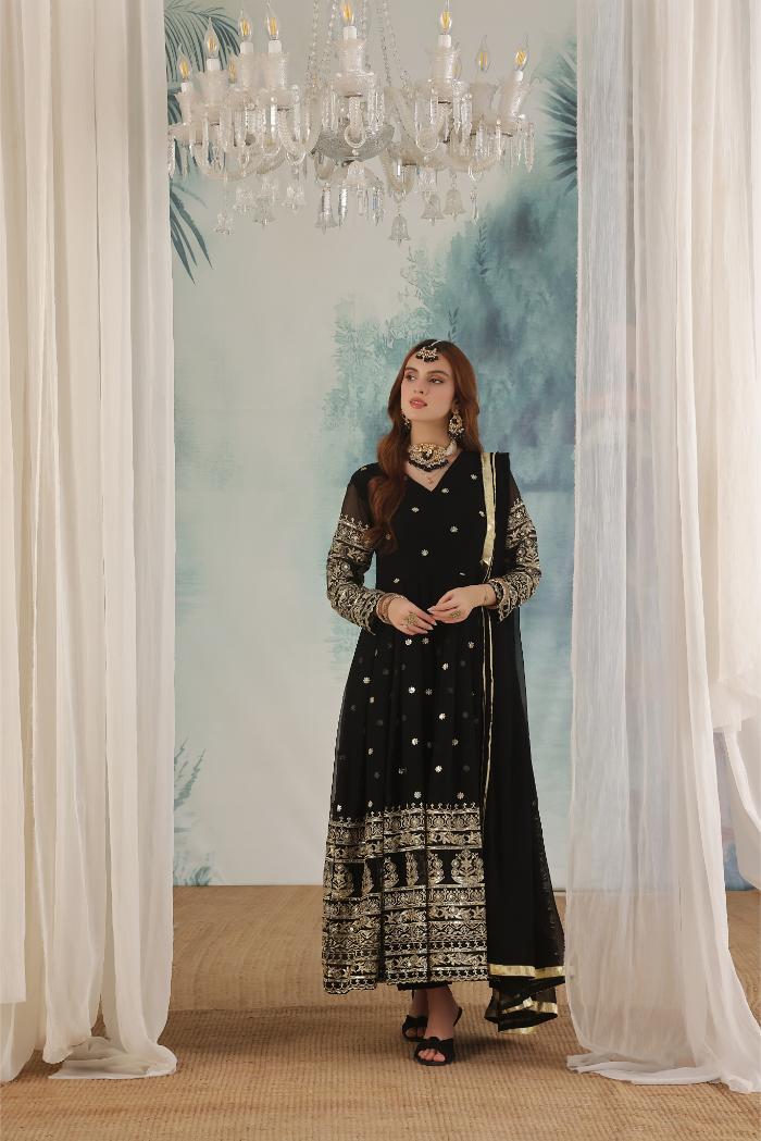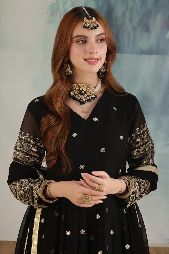 Al Siyaab - 3 Piec Miraal Black Pakistani Dress
