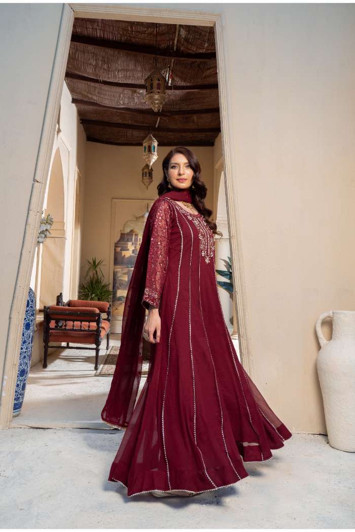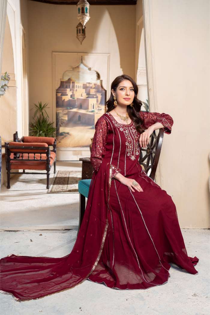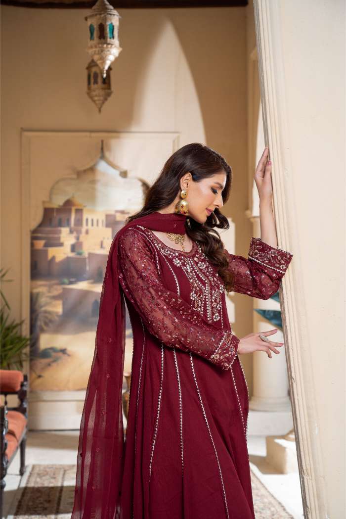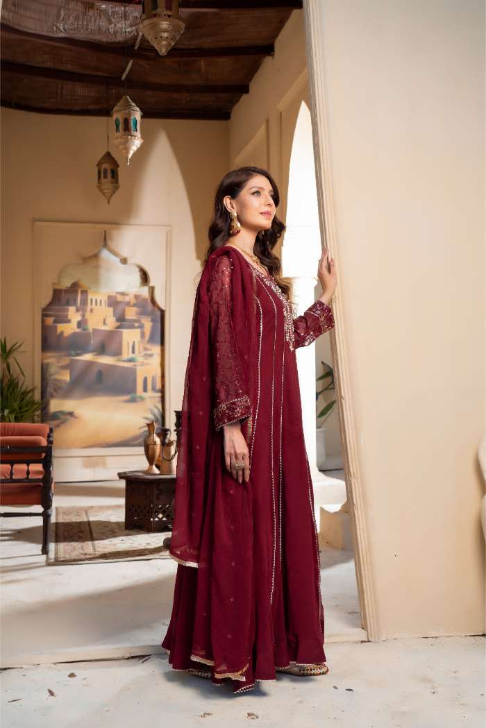 Al Siyaab - 3 Piece Raani Marron Pakistani Dress