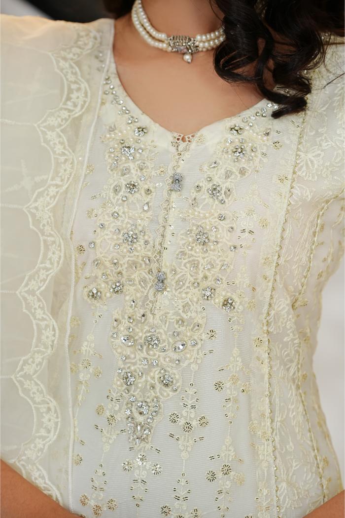 Al Siyaab - 3 Piece Roshni Off White Pakistani Dress