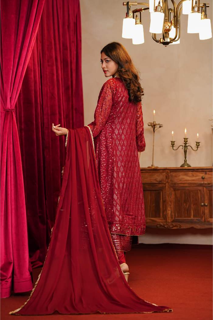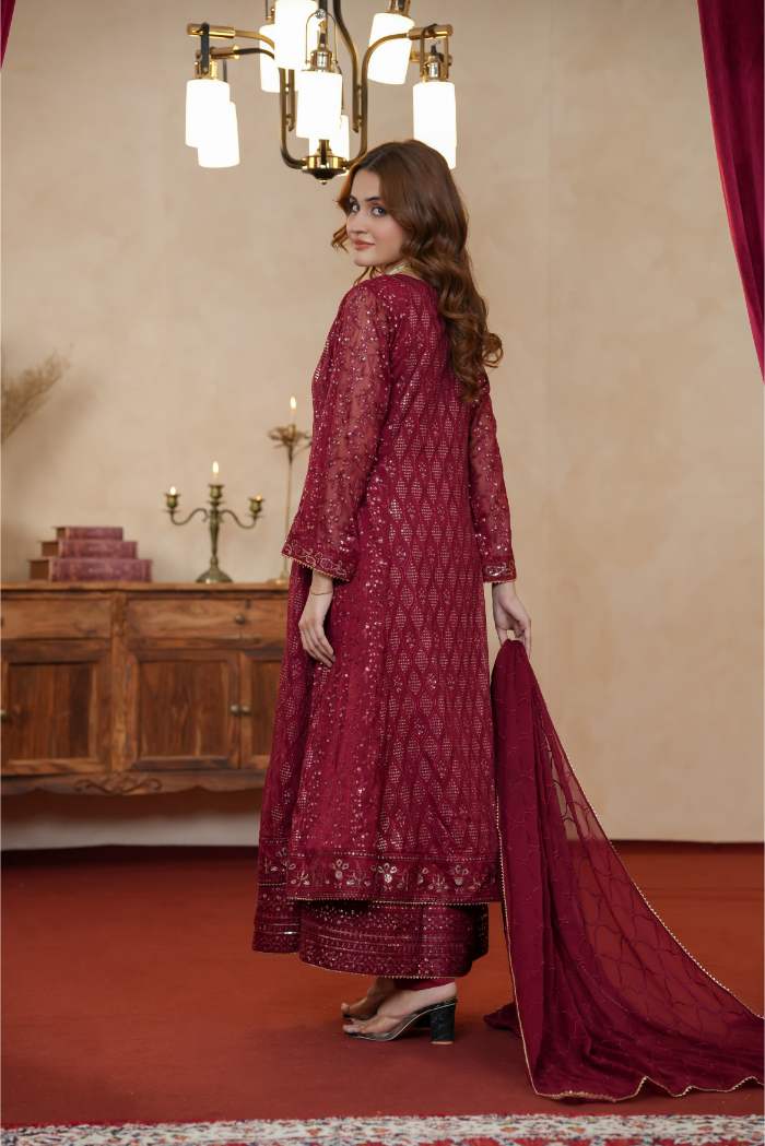 Al Siyaab - 3 Piece Sana Maroon Pakistani Dress