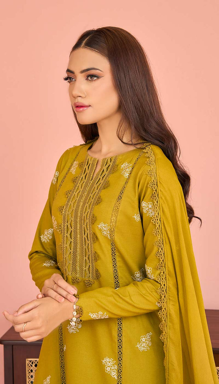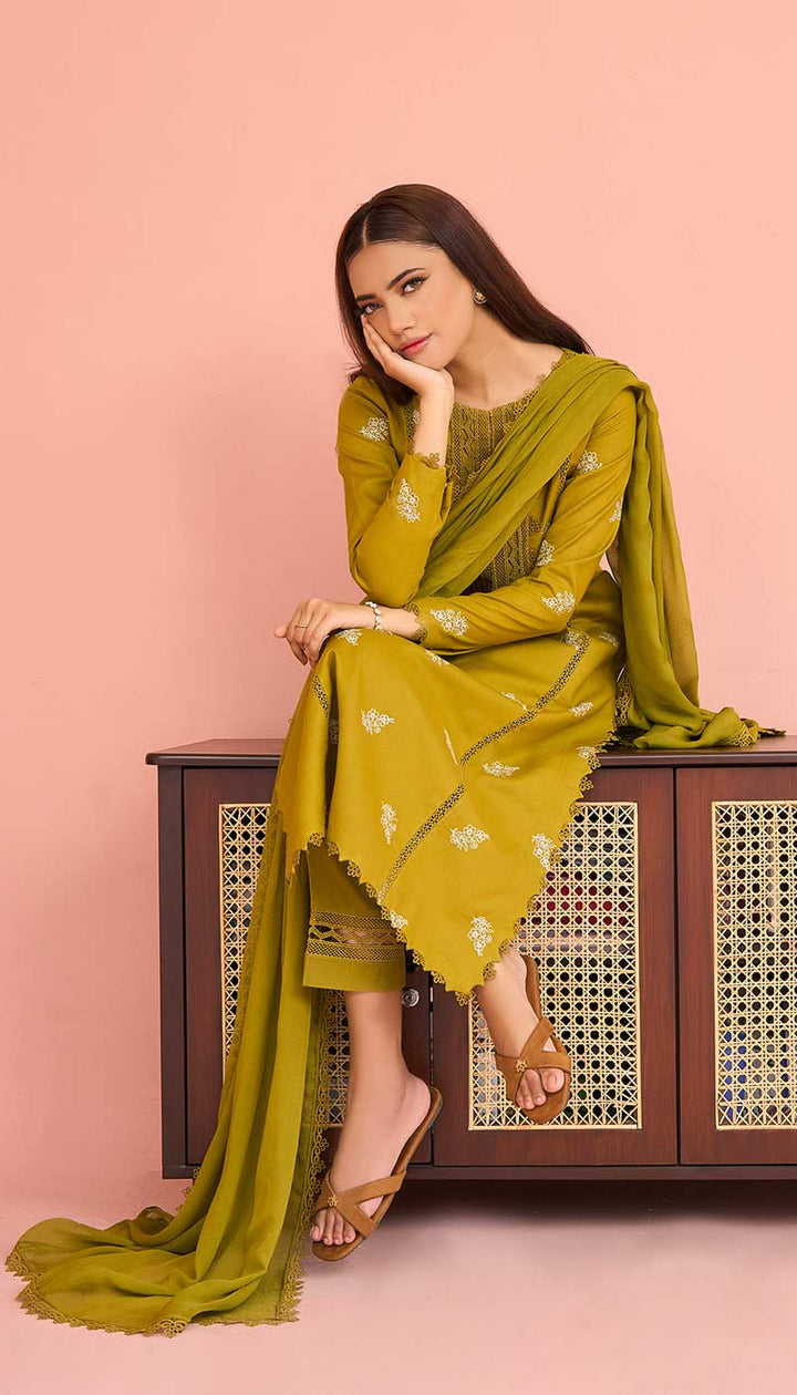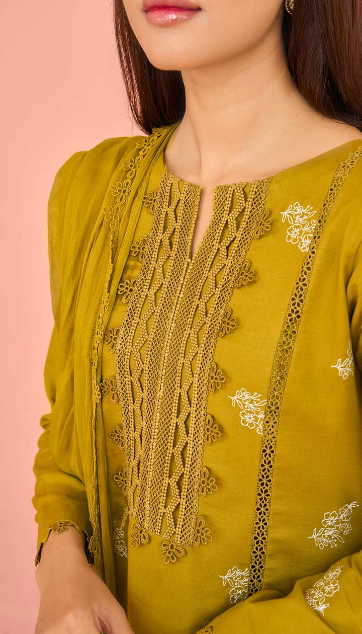 “Alice ” is made of soft and lightweight thread lawn, which ensures comfort all day long. The neckline of the shirt has a symmetrical pattern of lace, which gives it a formal look. The chiffon dupatta has lace, that adds a touch of attire.