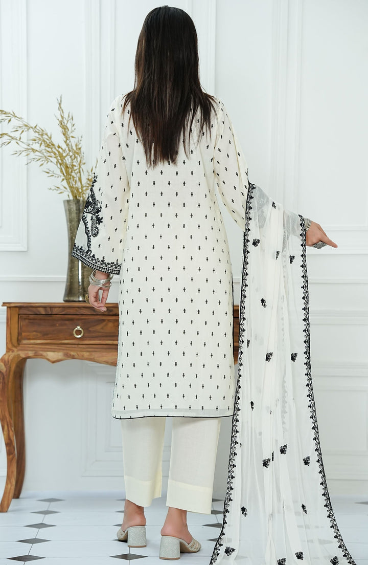 Amna Khadija - Amal Festive 3 Piece Lawn White D-03
