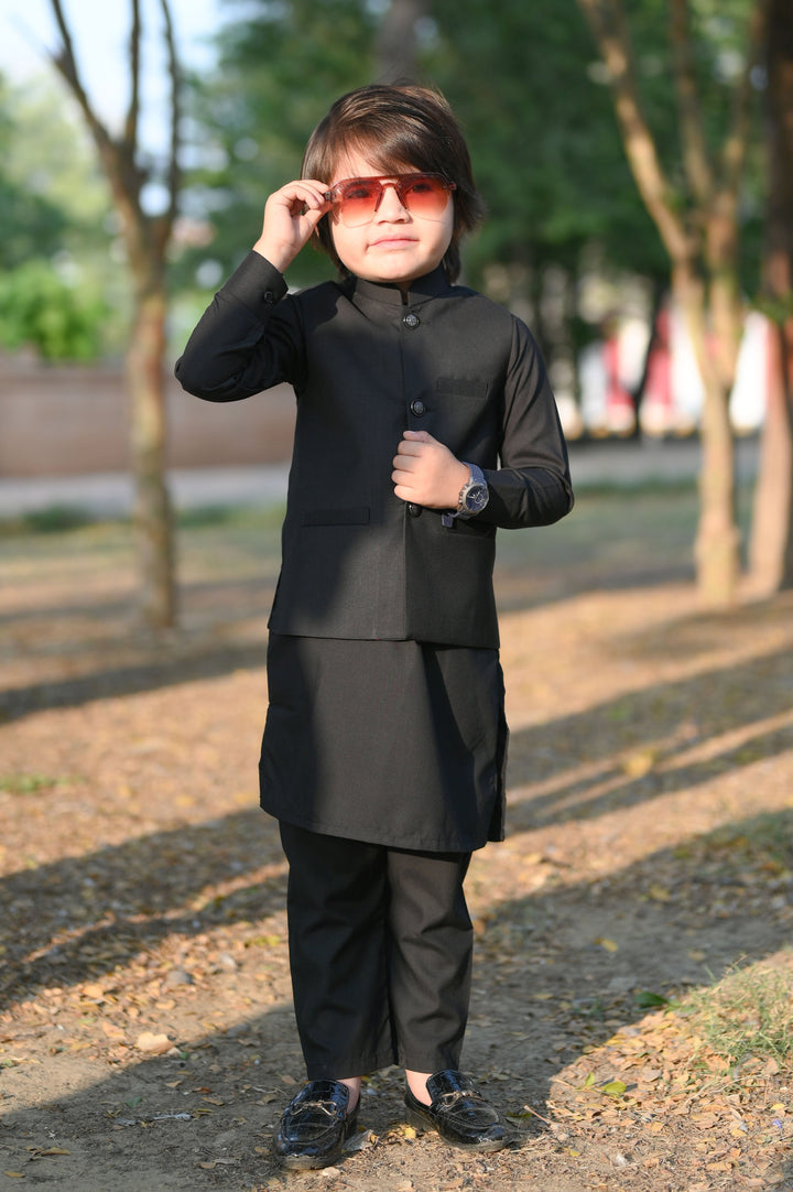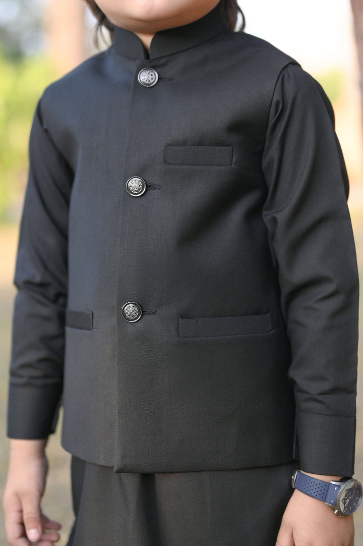 Hassanjee - Plain Black Waistcoat Suit EW29