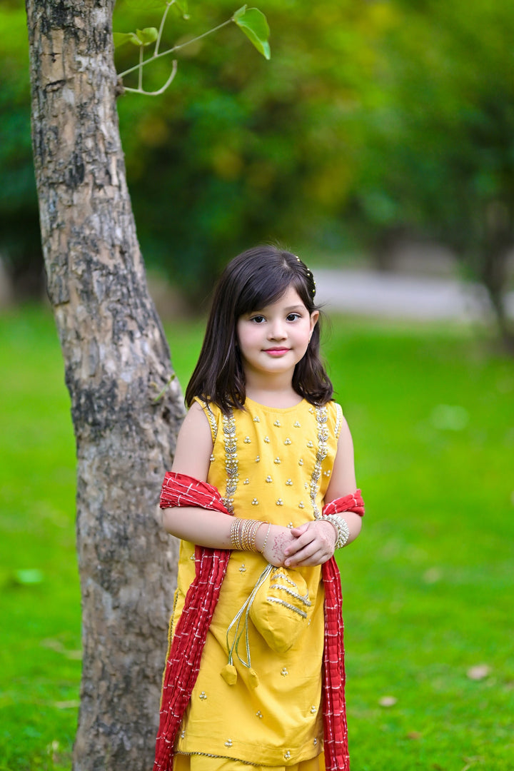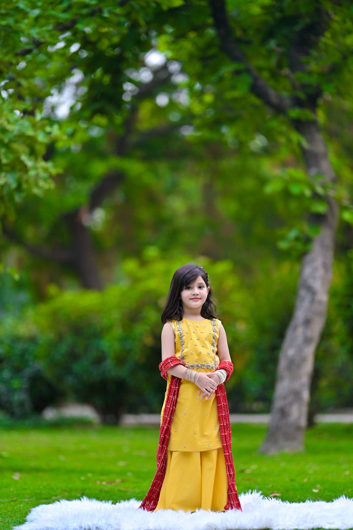 Desi Stitch - Gotta Gleam yellow Eastern Wear For Girls