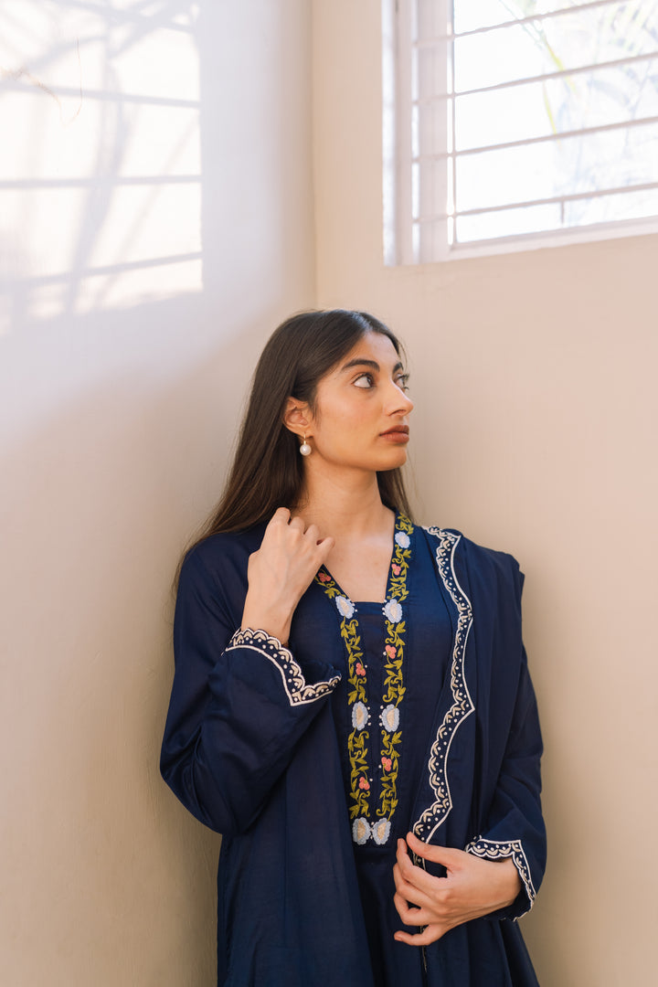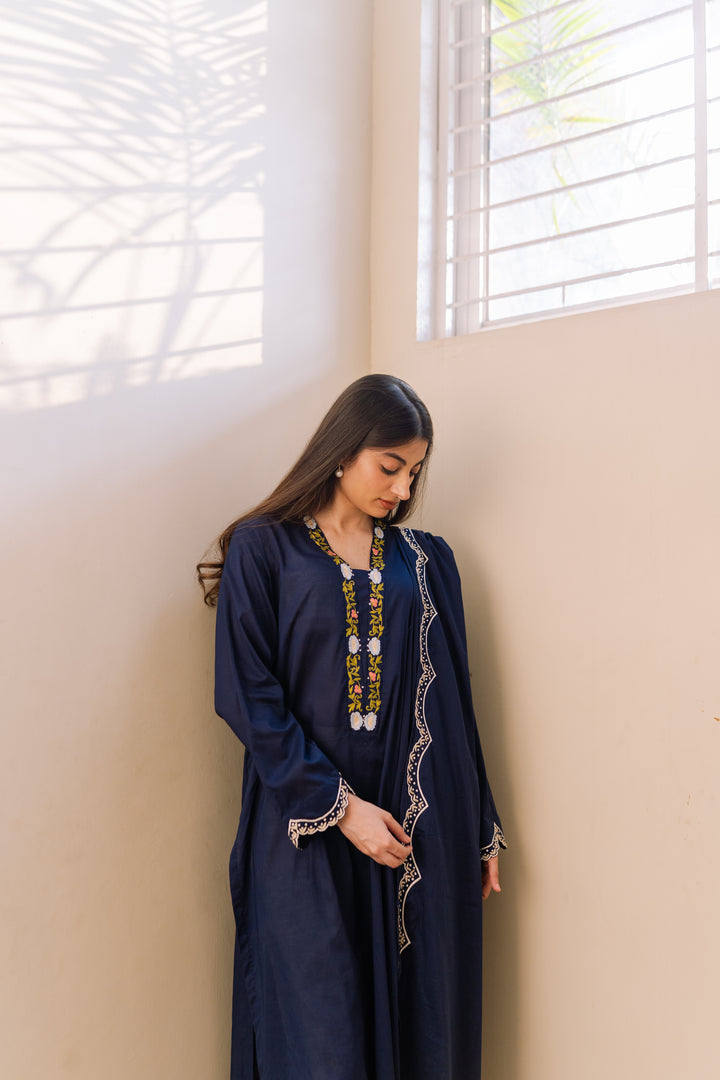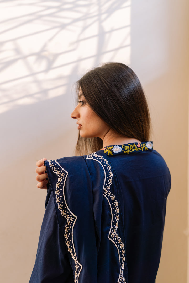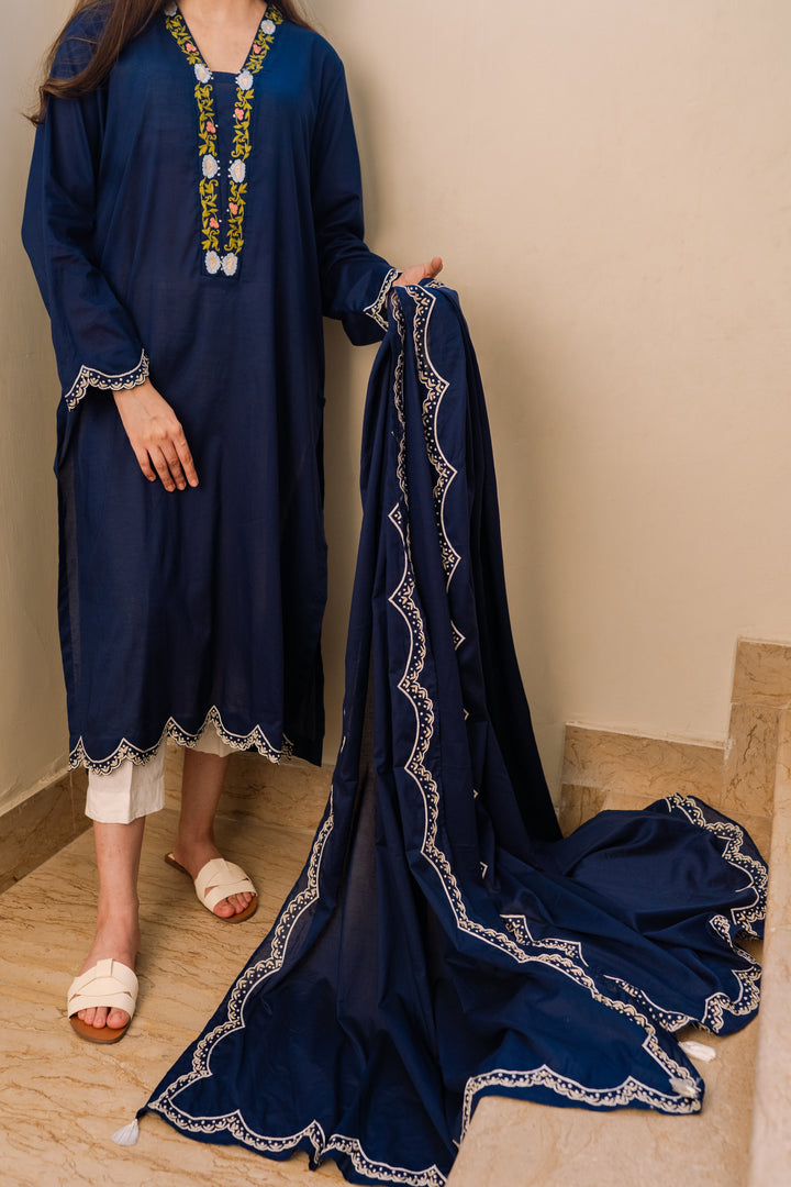 Zehra & Khadija - Mehfil 2 Pc Blue lawn scallopped kurta and dupatta