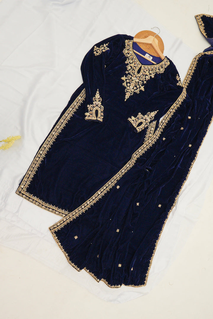 Desi Stitch - Blue Velvet Eastern Wear For Girls