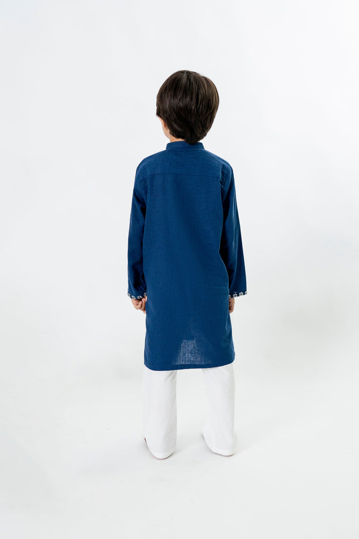 Al Qaswa - Boys Blue Embroidered Kurta – Ban Collar Outfit for Eid 2025