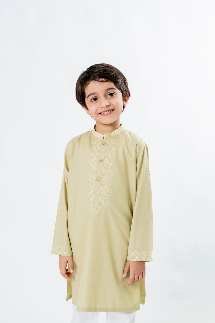 Pistachio Green Embroidered Kurta for Boys – Summer Eid Collection 2025