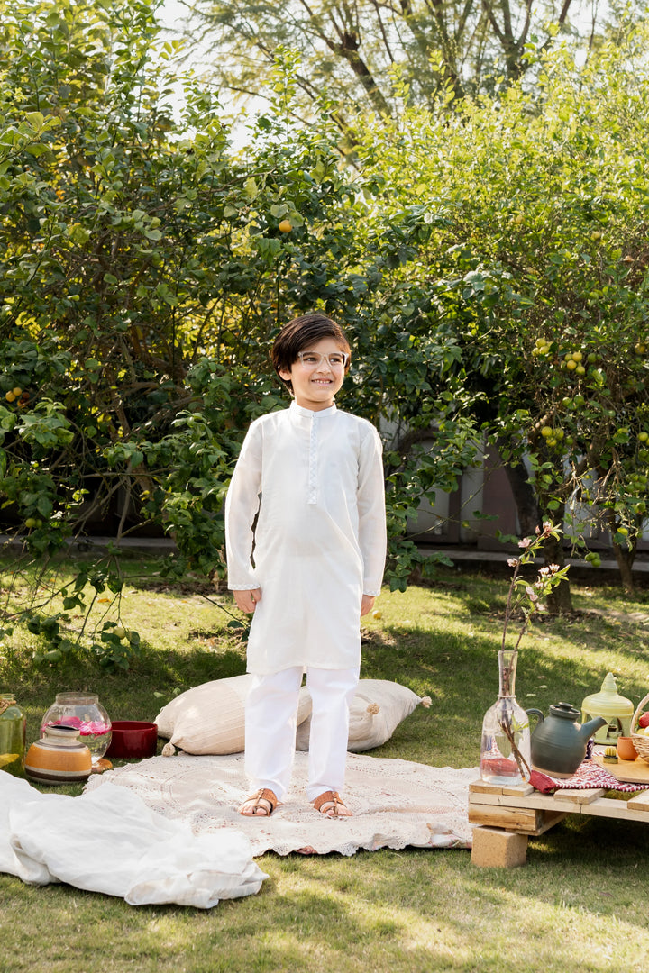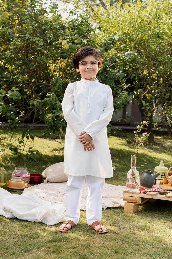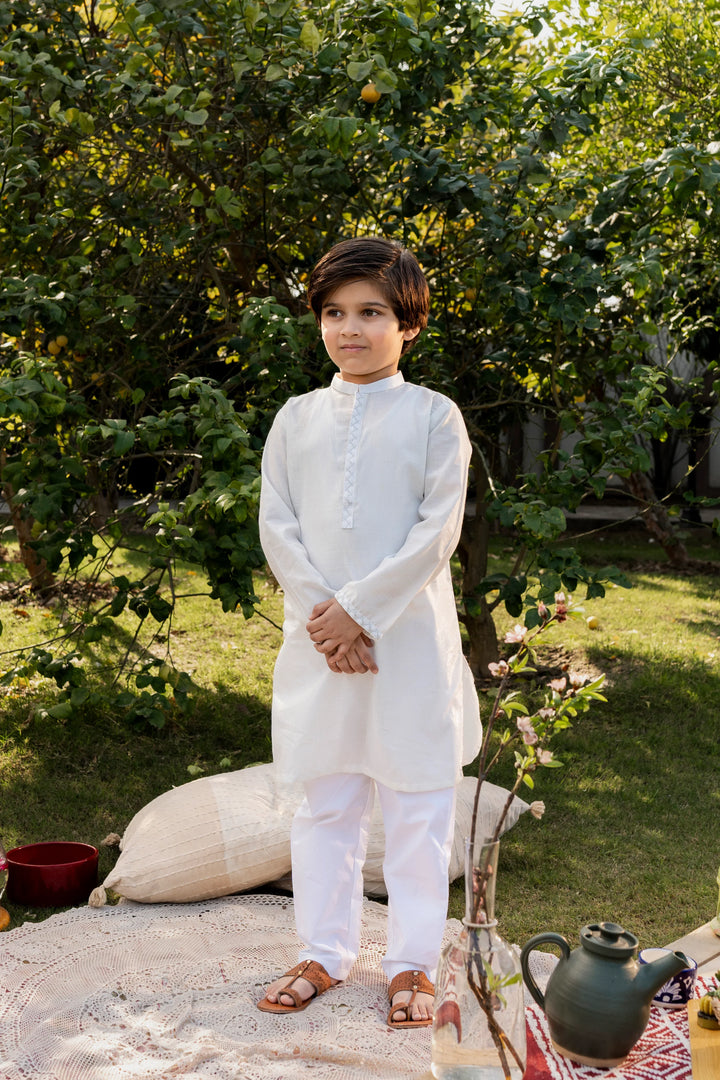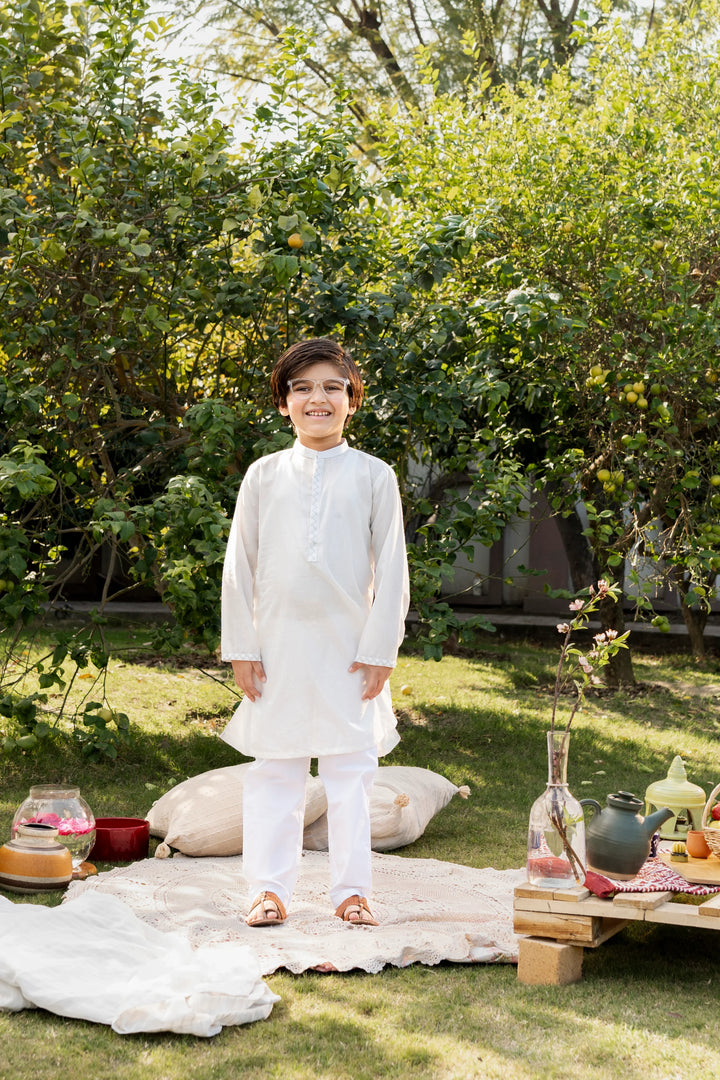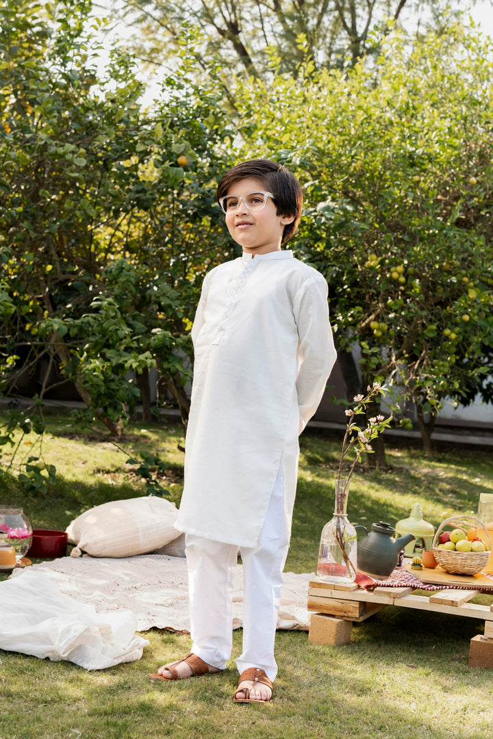White Embroidered Kurta for Boys