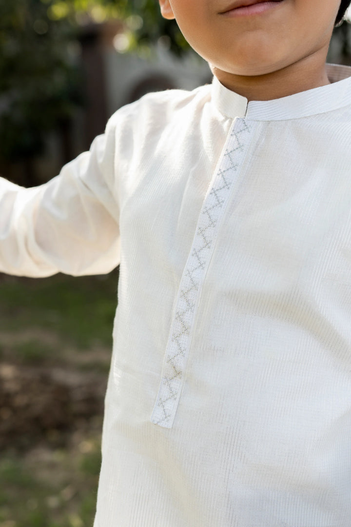 Al Qaswa - Boys White Embroidered Kurta – Ban Collar Outfit for Eid 2025