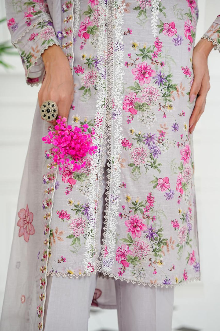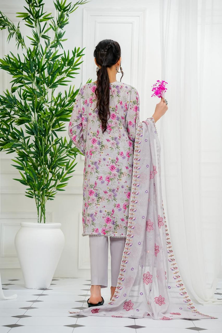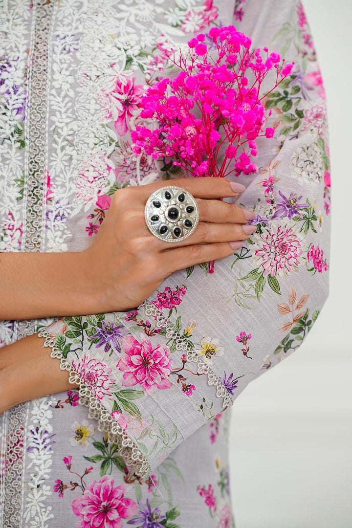 Amna Khadija - Chantelle Print & Embroidered 3 Piece Lawn Light Grey D-04
