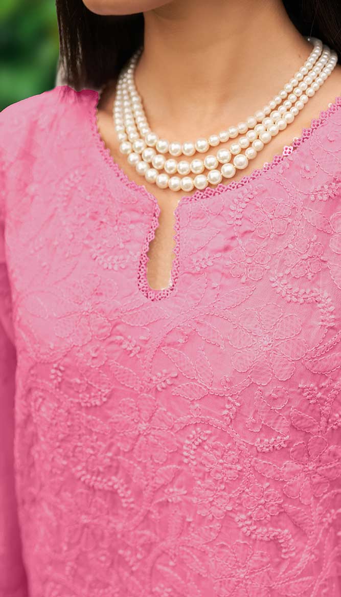 Disclaimer: Please note that the Indian chikankari design may differ from the image due to its unique handcrafted nature, where each design is one-of-a-kind and can't be mass-produced. Hence showcasing the beauty of this old-age Indian craft. However, the outfit's stitching details and color will match the image.
