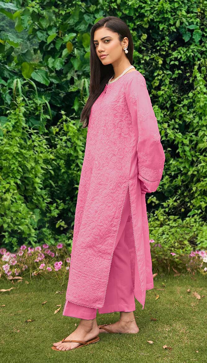 The “Corey” chikankari shirt is the epitome of elegant style. Beautifully fusing traditional craftsmanship with contemporary sophistication, this piece is meticulously made with delicate hand-embroidered chikankari motifs on soft pink cotton. Because of its inherent cooling qualities, the lightweight cotton fabric guarantees optimal comfort, particularly during warmer months.