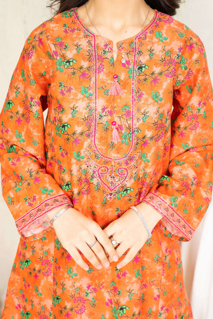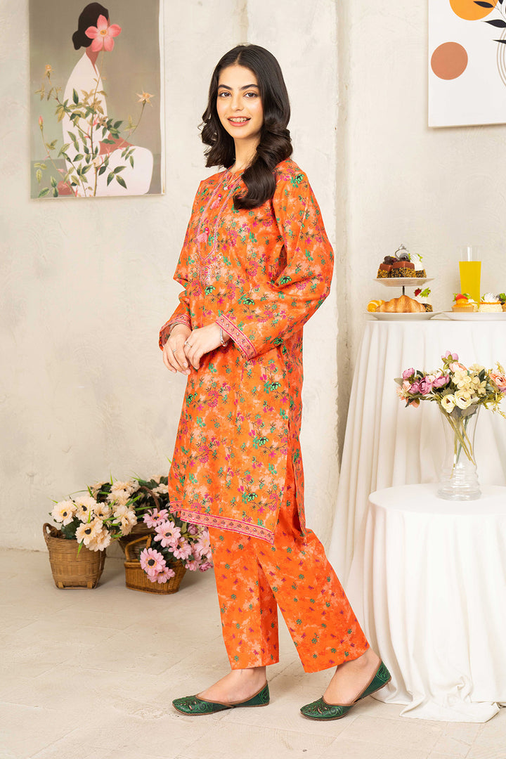Daisy Outfit - Fig 2 PC Printed & Embroidered Olive Dobbi Cotton Daily Wear