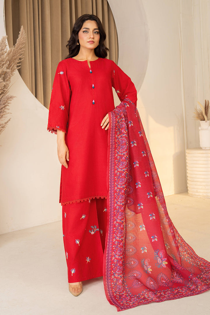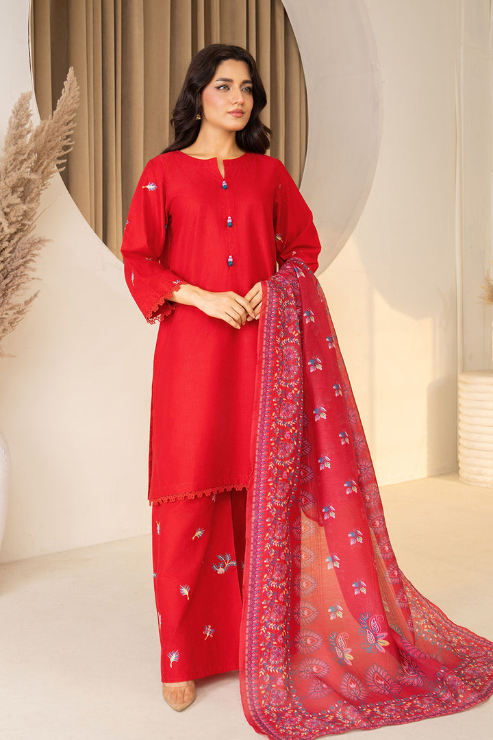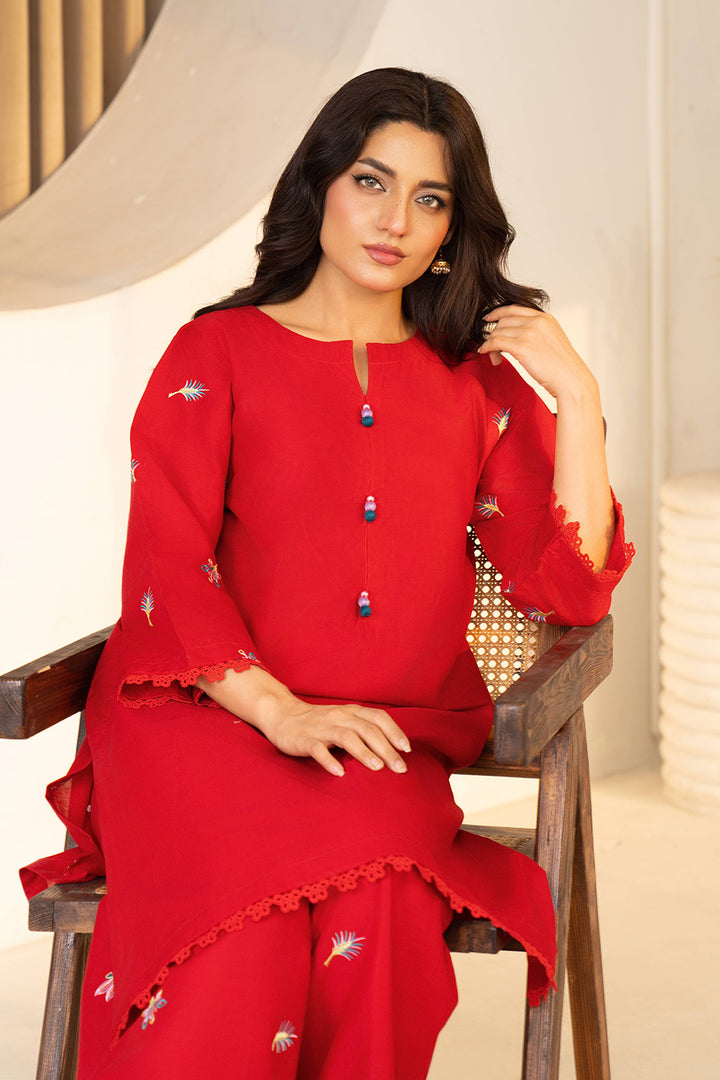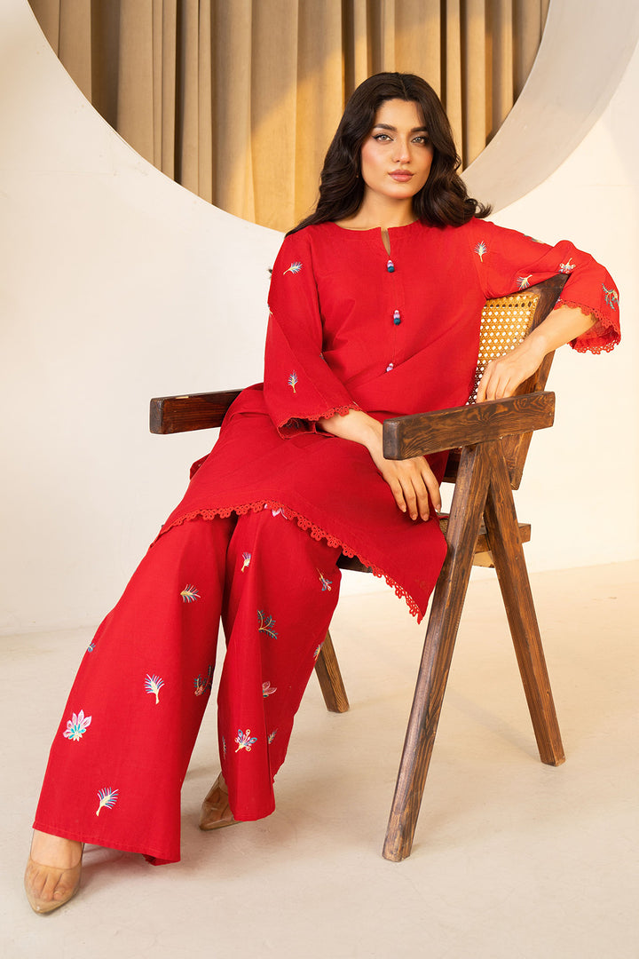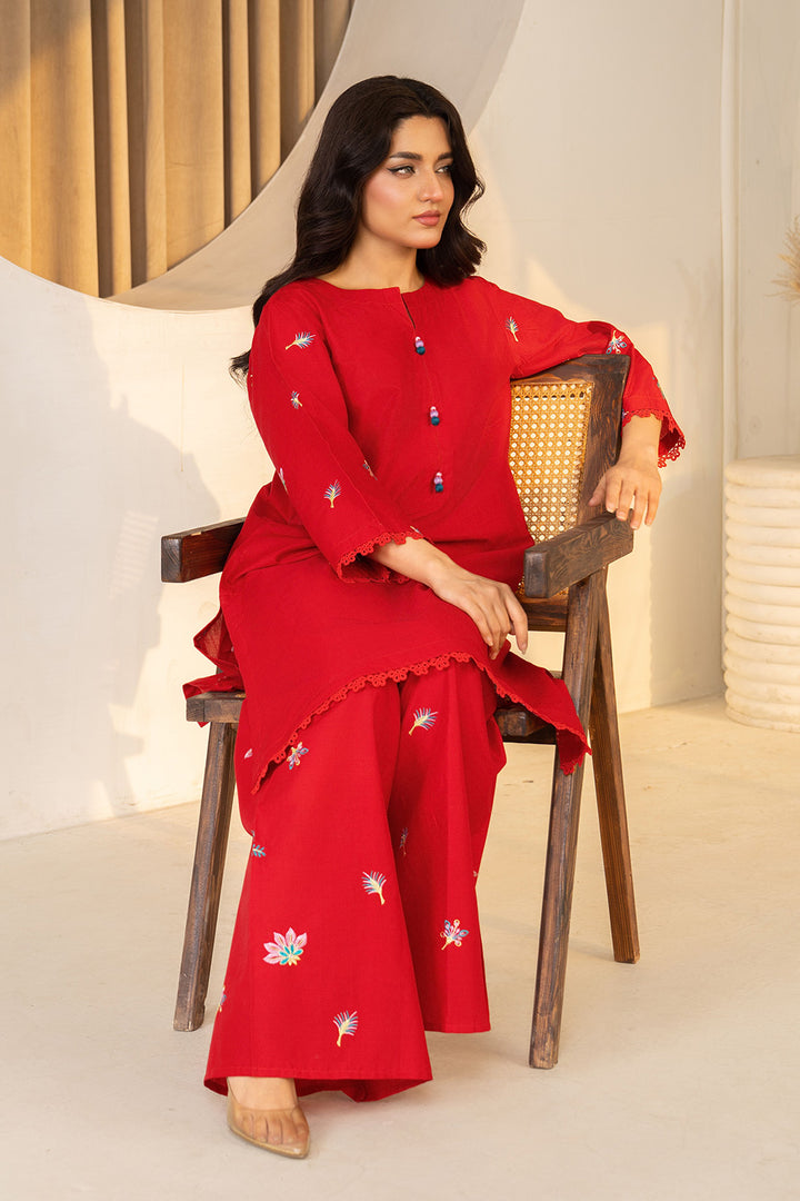 Daisy Outfit - Laal 2 PC Embroidered Red Lawn Daily Wear