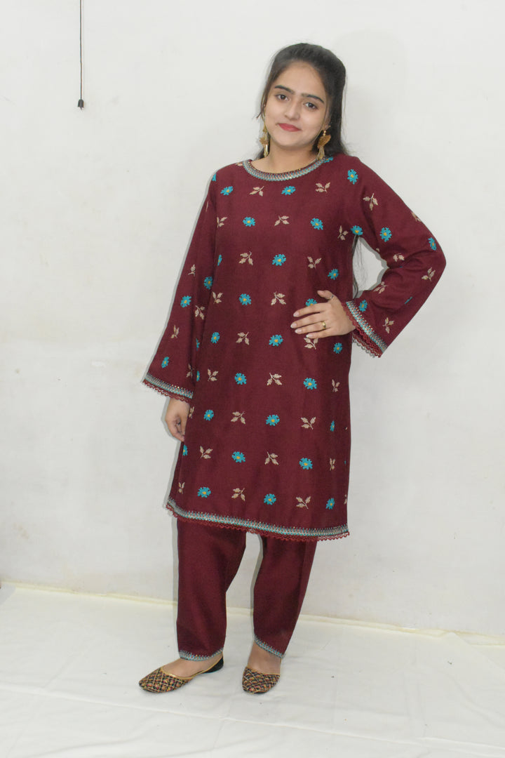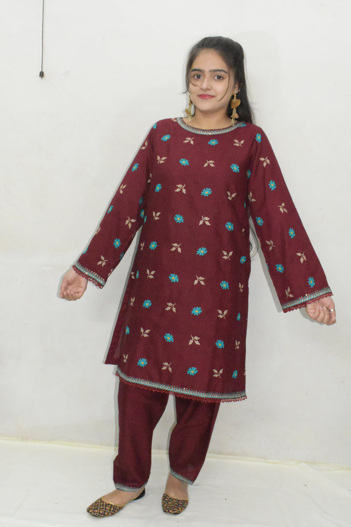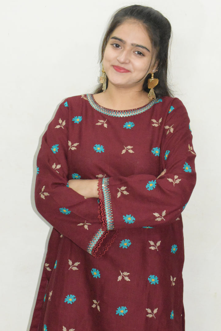 Daisy Outfit - Mary 2 PC Embroidered Mehroon Khaddar Daily Wear